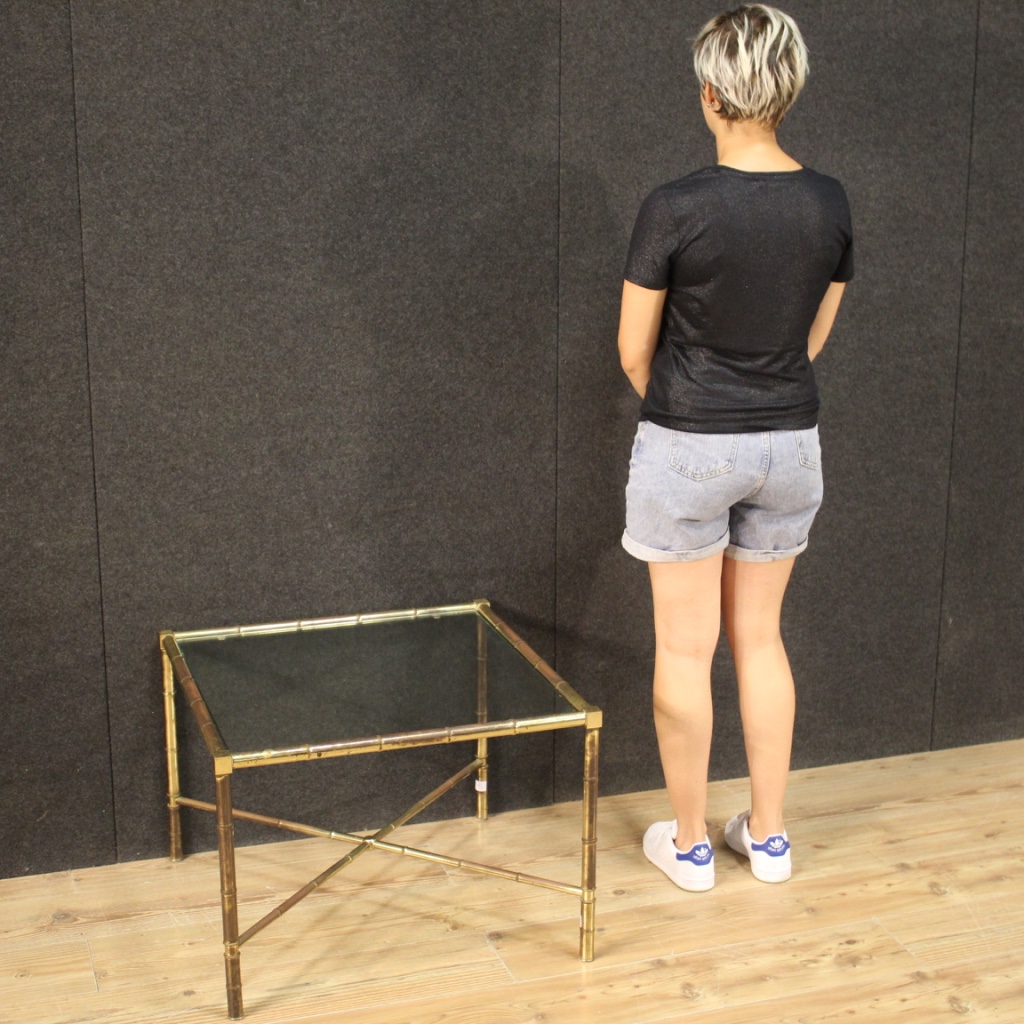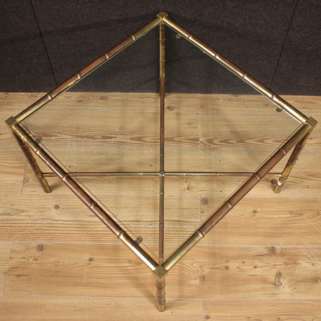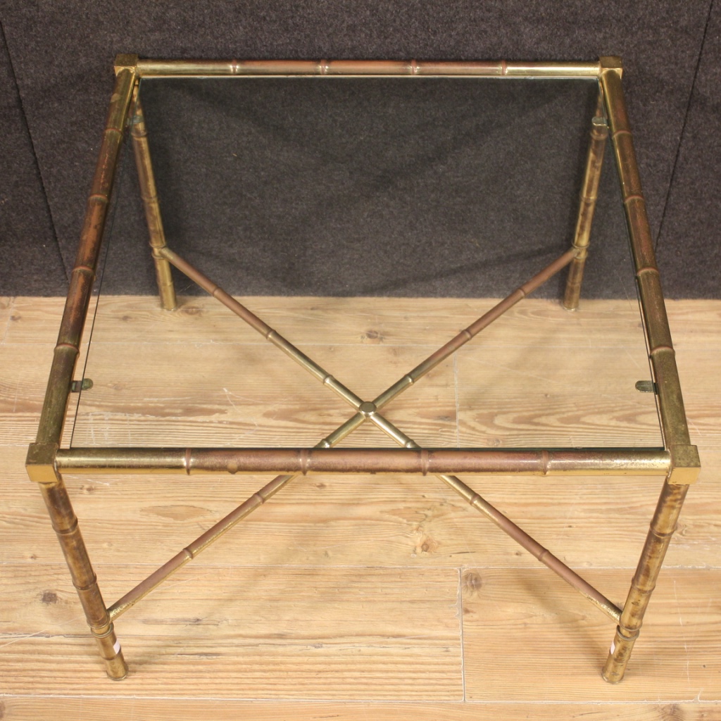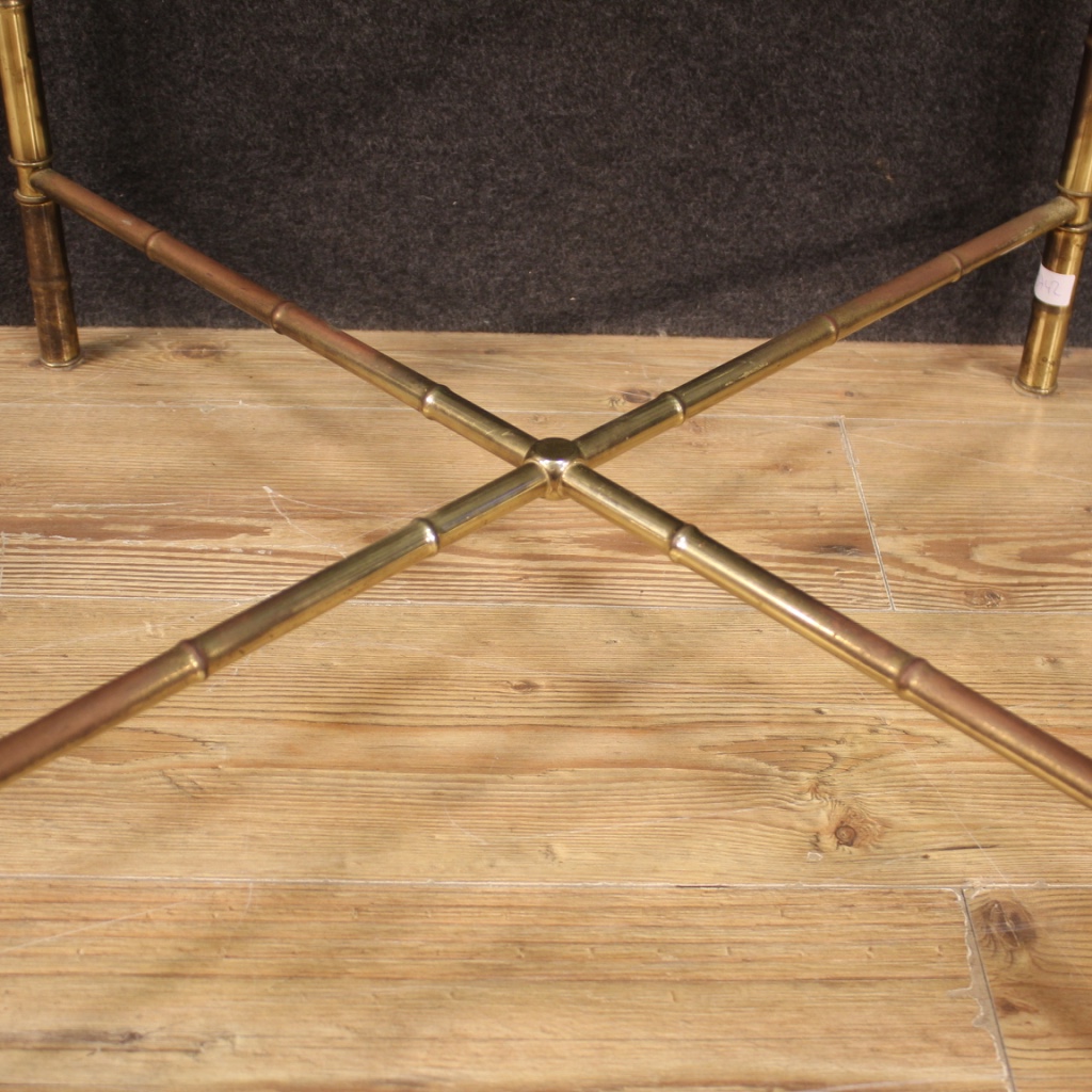 French coffee table from the 60s / 70s. Furniture in gilded and chiseled brass (faux bamboo) and glass top with small signs of wear (see picture). Beautifully decorated low coffee table for antique dealers and interior decorators. Brass with various signs of wear (see picture). Glass top of good size and service. Structurally sound, in a fairly conservative state.