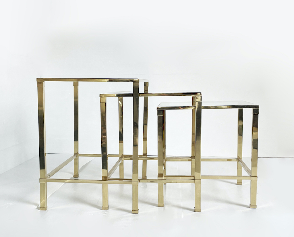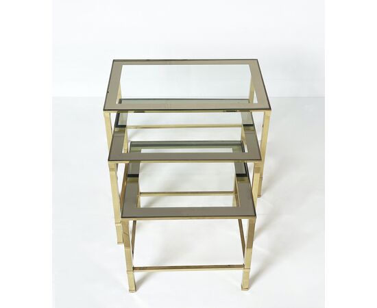 Particolare coffee table Vintage anni 70 “a nido” caratterizzato dalla presenza di tre elementi mobili di diverse misure, realizzati in modo da essere perfettamente e armonicamente sovrapponibili tra loro.