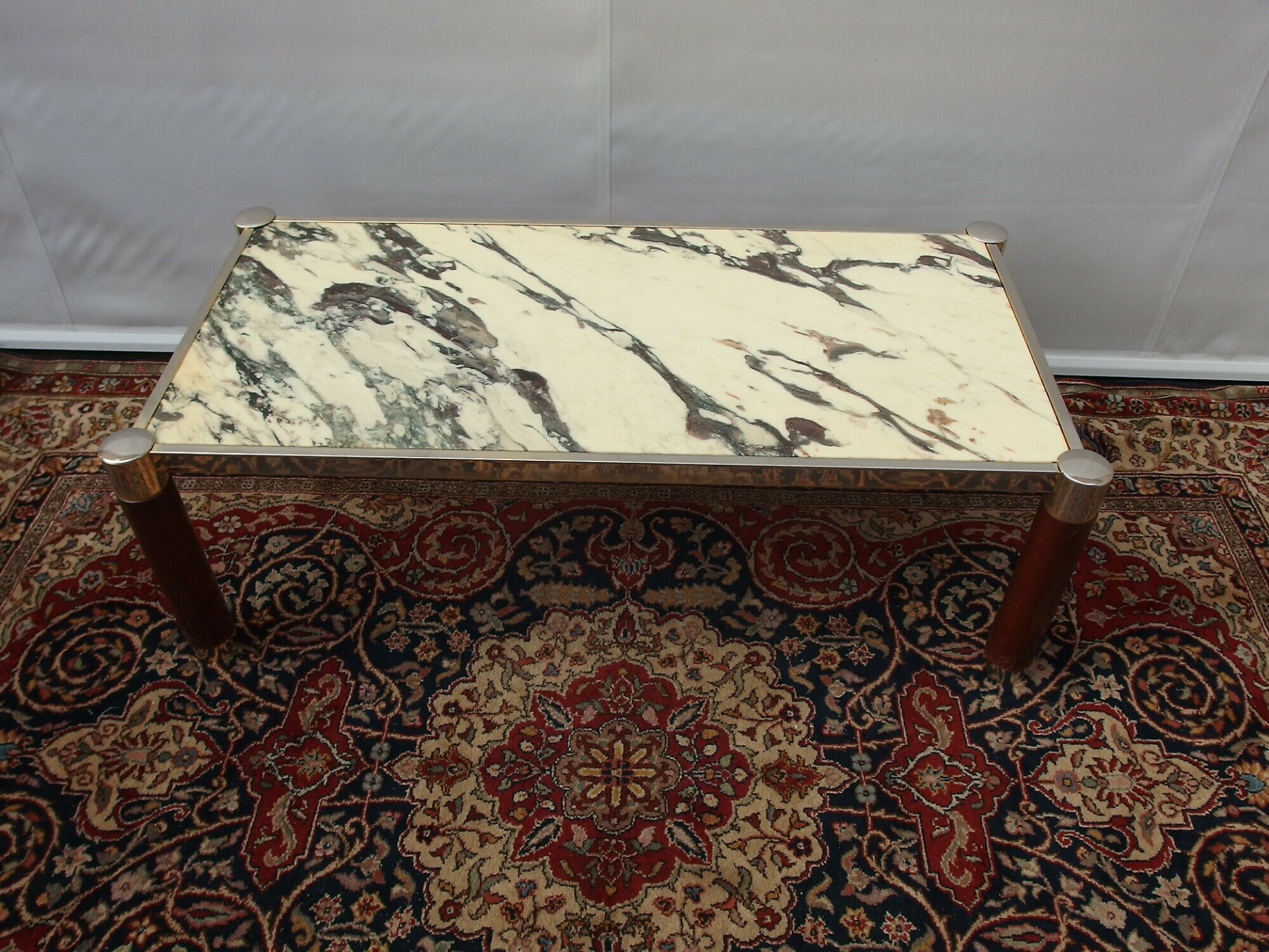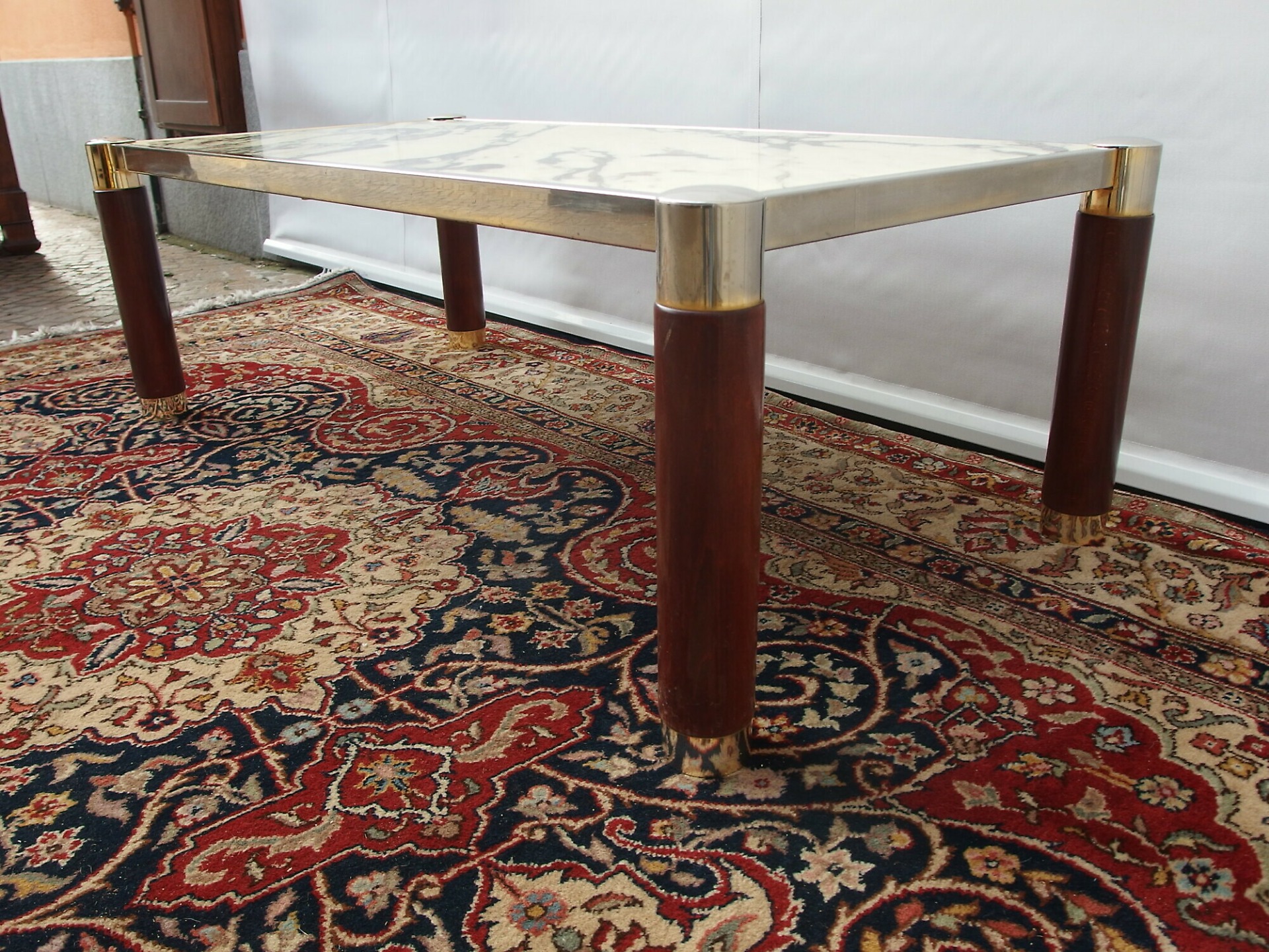 Bellissimo tavolino vintage da salotto rettangolare anni 70 con piano in marmo epoca 1960-70 di provenienza Italia.
