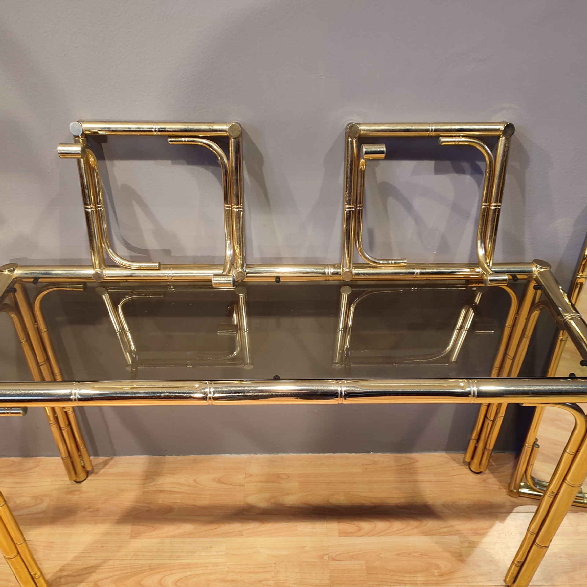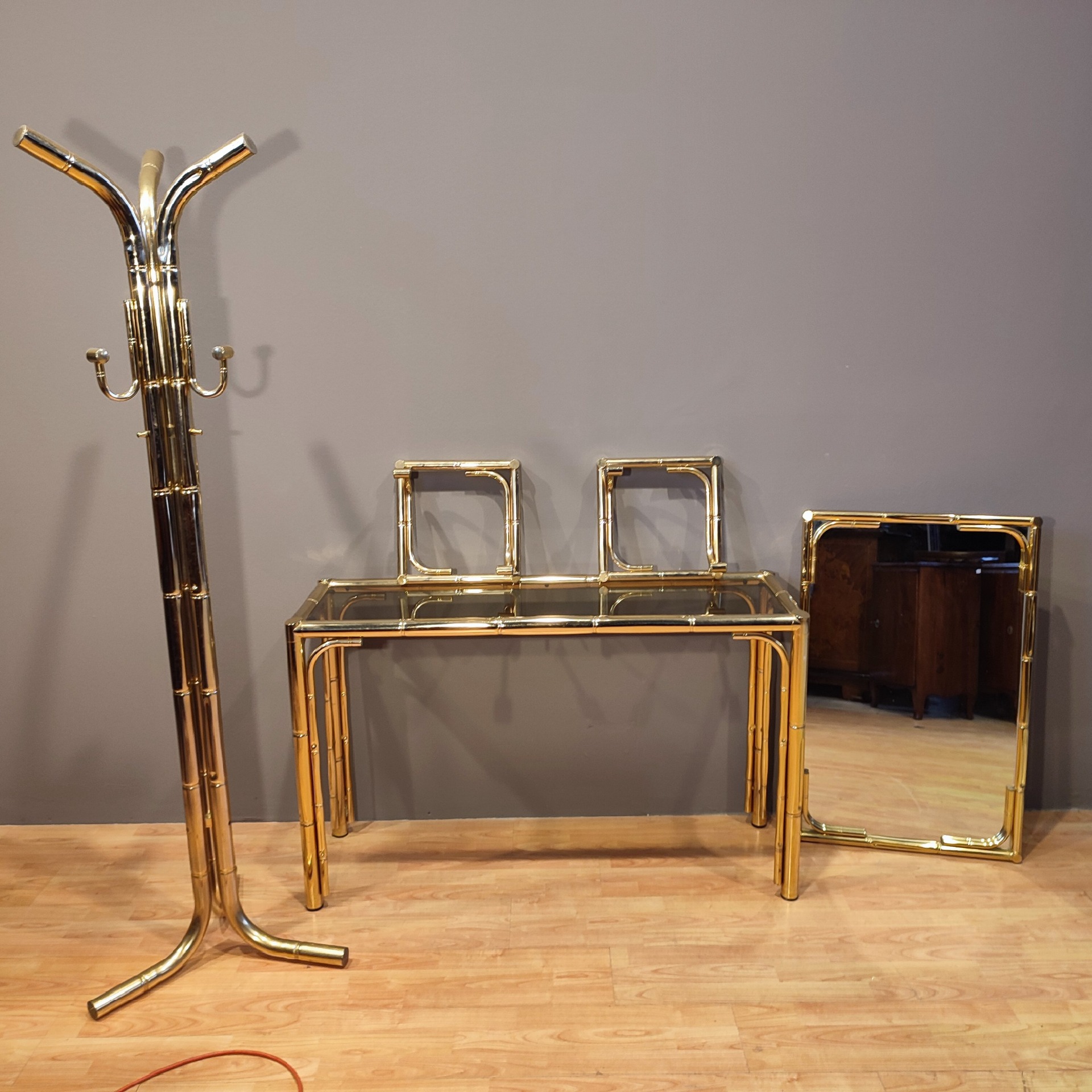 1970s entryway set in brass worked in the "Bamboo" style. Excellent quality.