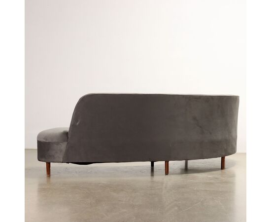 Divano dalla forma a "fagiolo" con imbottitura a molle e rivestimento non originale del periodo in velluto.