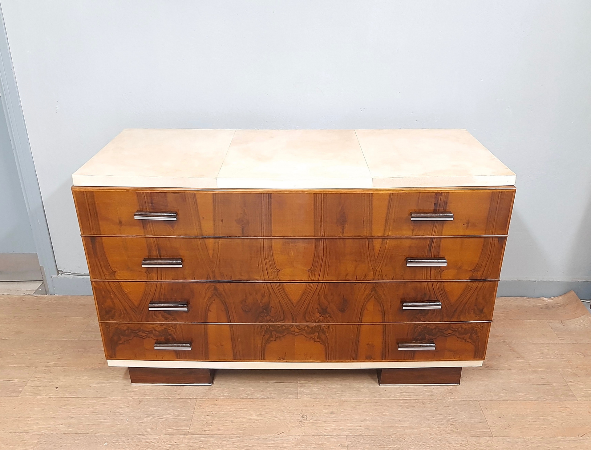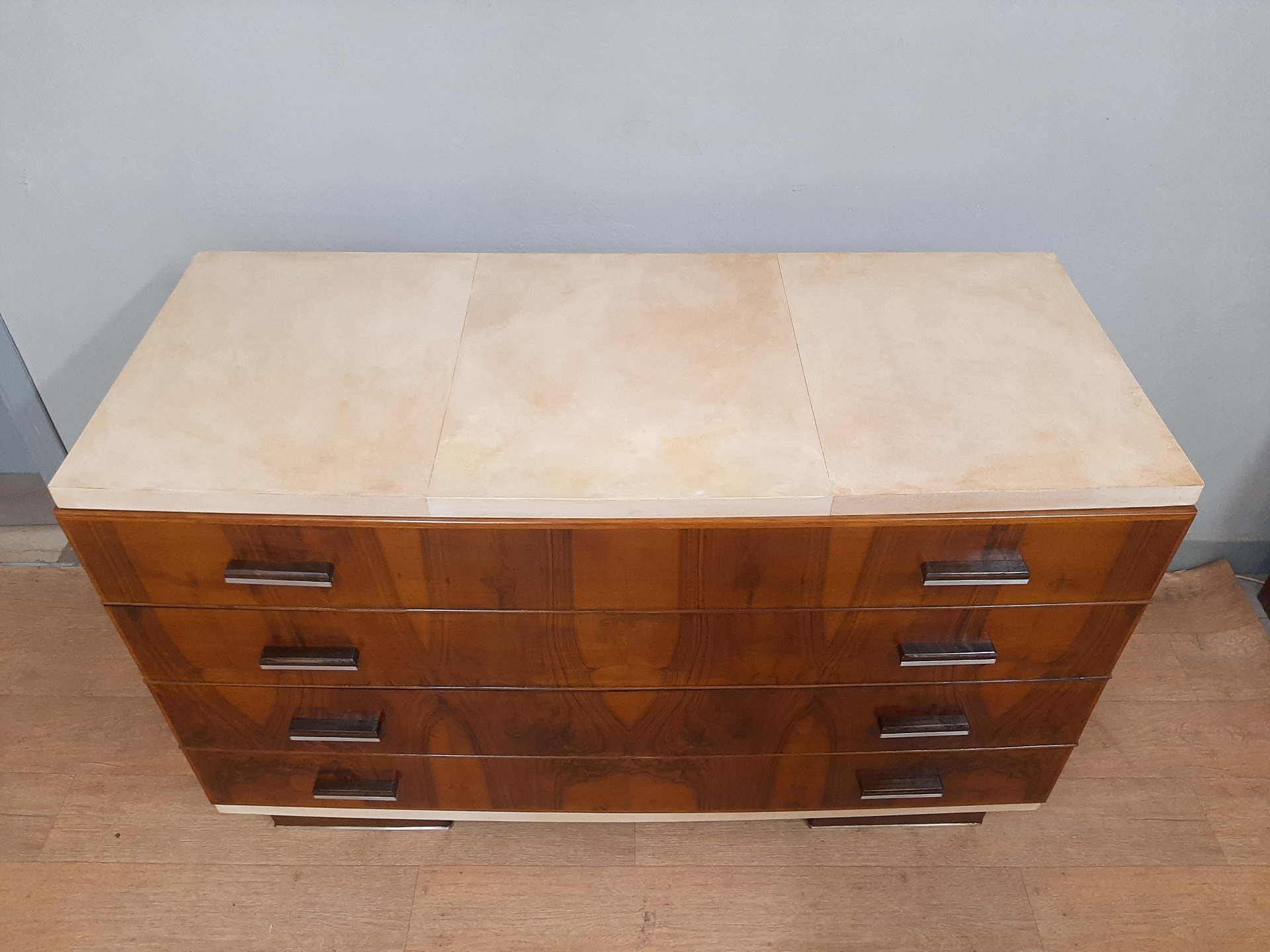 Art Deco chest of drawers with walnut and parchment covering, 1930-40