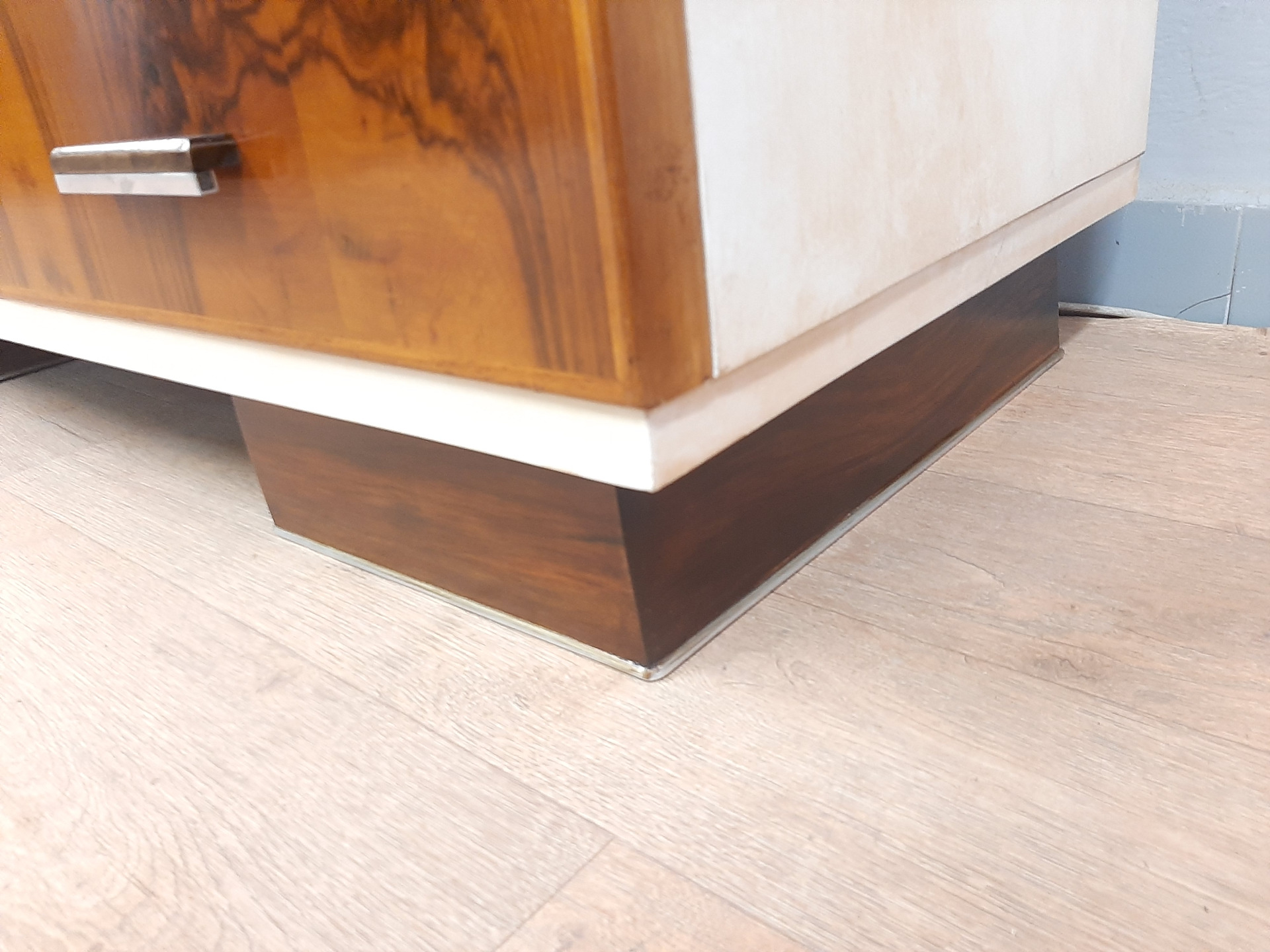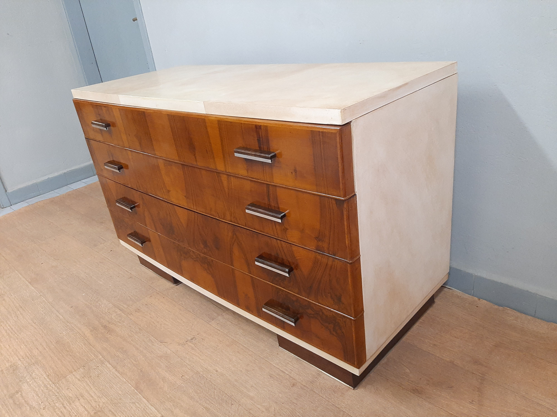 Art Deco chest of drawers with walnut and parchment covering, 1930-40