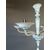 Raffinato lampadario in vetro di Murano a 6 luci rivolte verso l’alto con lavorazione ad effetto scavo. Colori neutri e chiari come il celestino e il grigio/trasparente. In perfette condizioni.