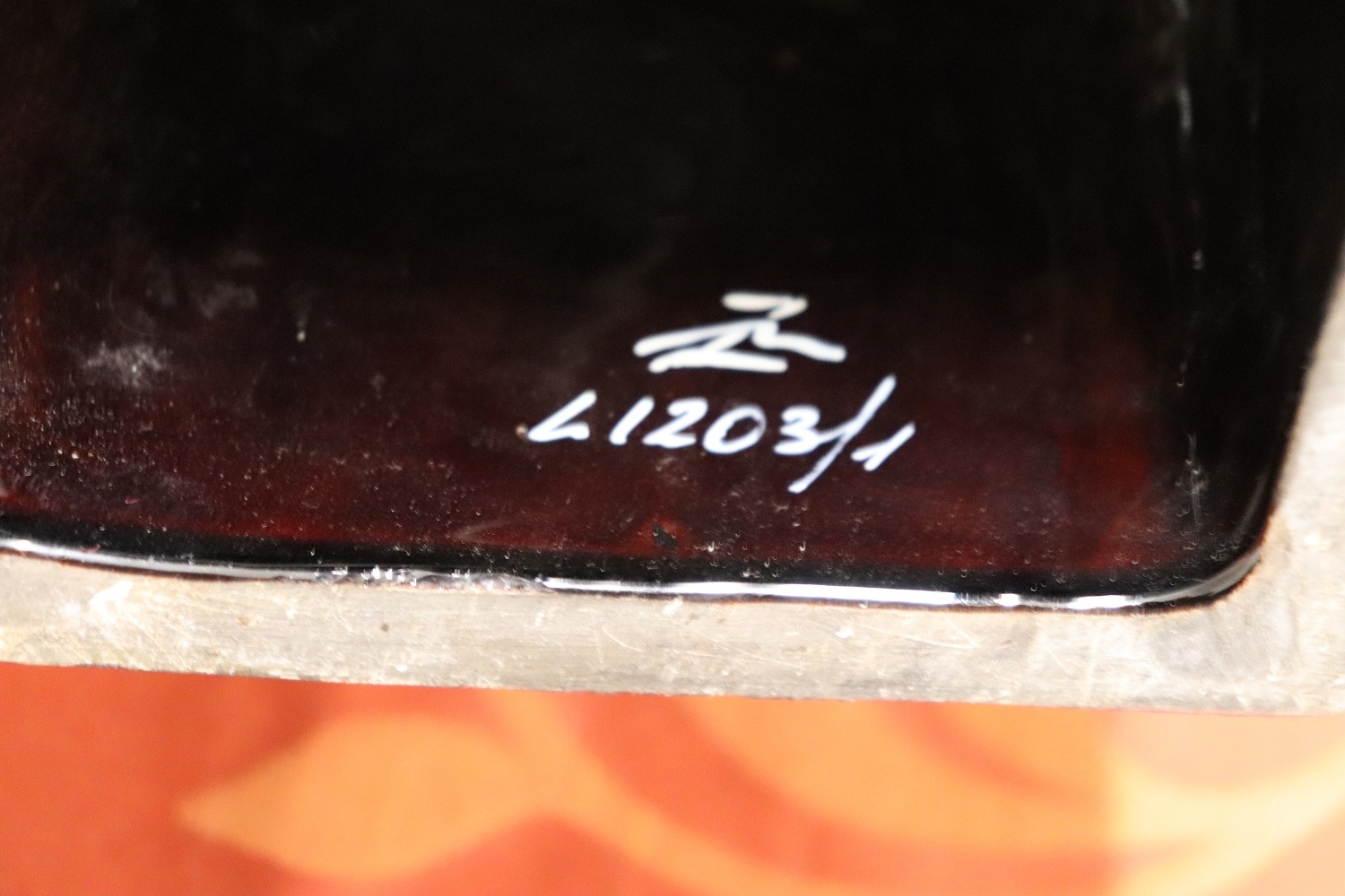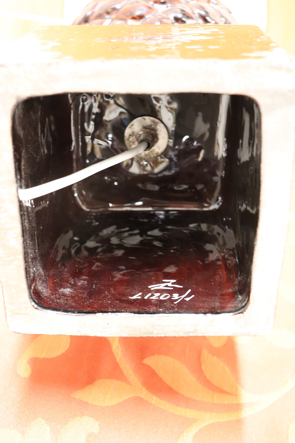 1970s design table lamp made of brown glazed ceramic in the shape of a pineapple, one light. There is an unidentified mark under the base. Perfect condition of the ceramic, some signs of the passage of time on the lampshade. We recommend that you look at all the attached photos in detail. Proposed at an excellent negotiable price, we invite you to send us your purchase proposals, we will gladly evaluate them.