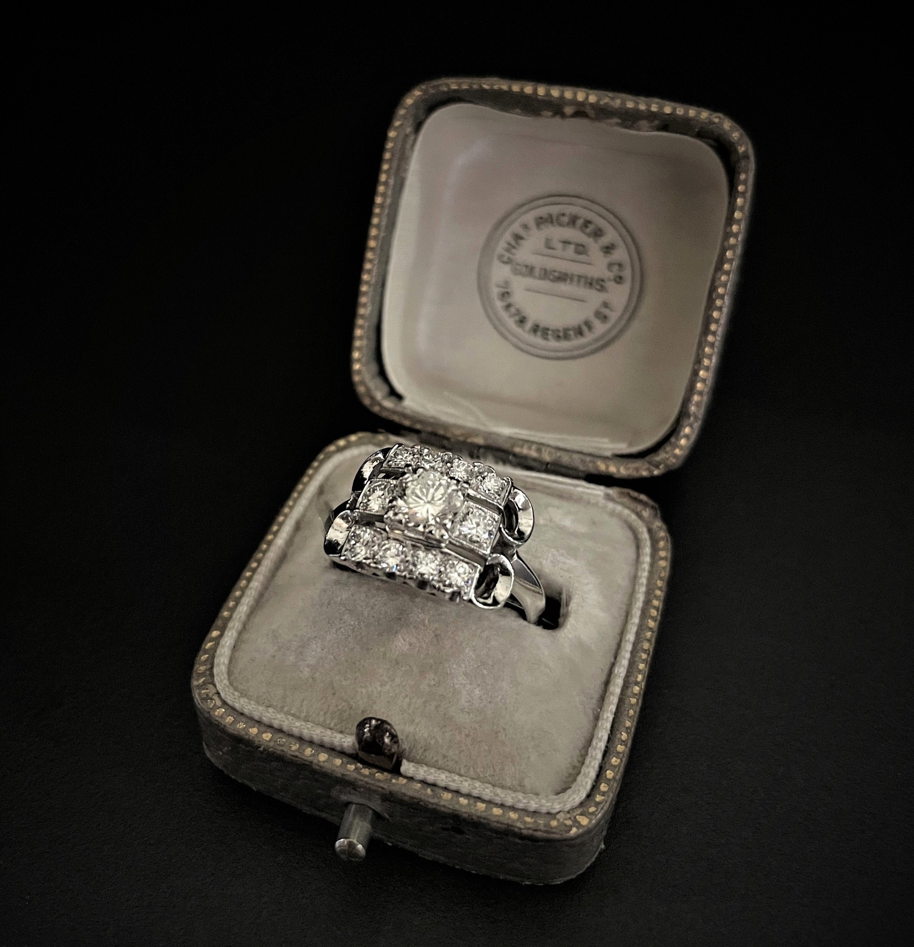 Anello “Architettura Art Déco” in Platino e Diamanti – America, Anni ’40
