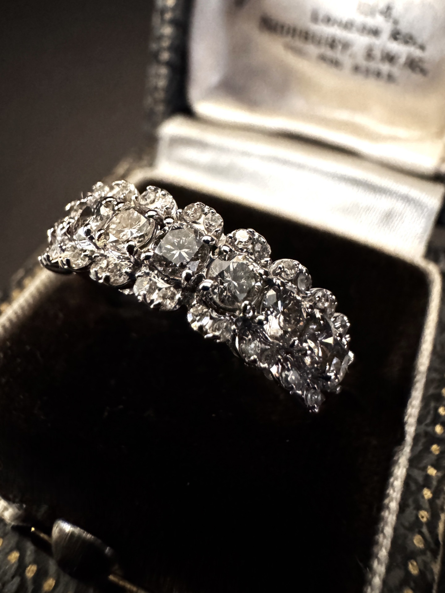 Splendido Anello a Fedina Vintage in Oro Bianco e Diamanti – America, Anni ’60