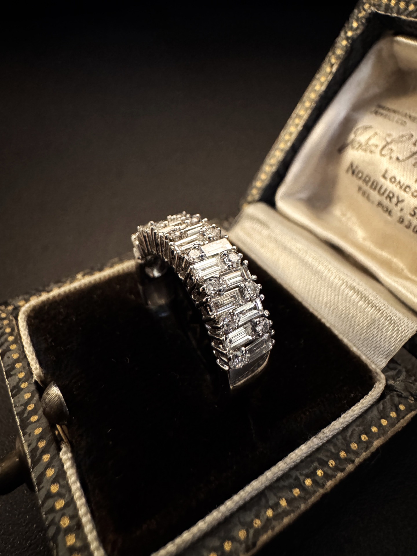 Anello Mezza Veretta in Oro Bianco con Diamanti – Eleganza Americana Anni ’70