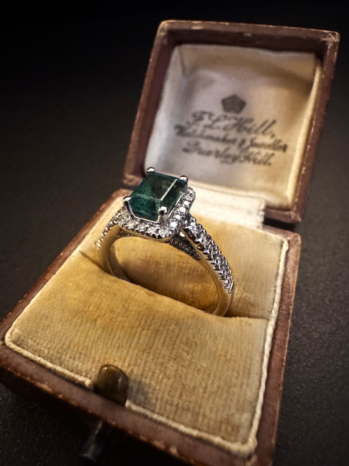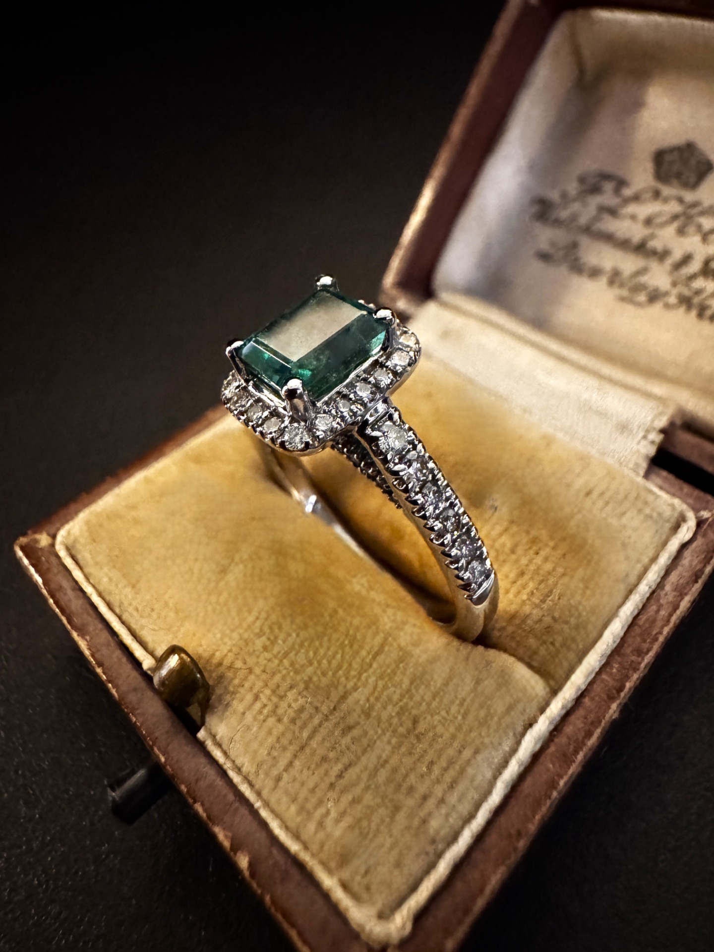 Anello in Oro Bianco con Smeraldo e Diamanti – America 1970