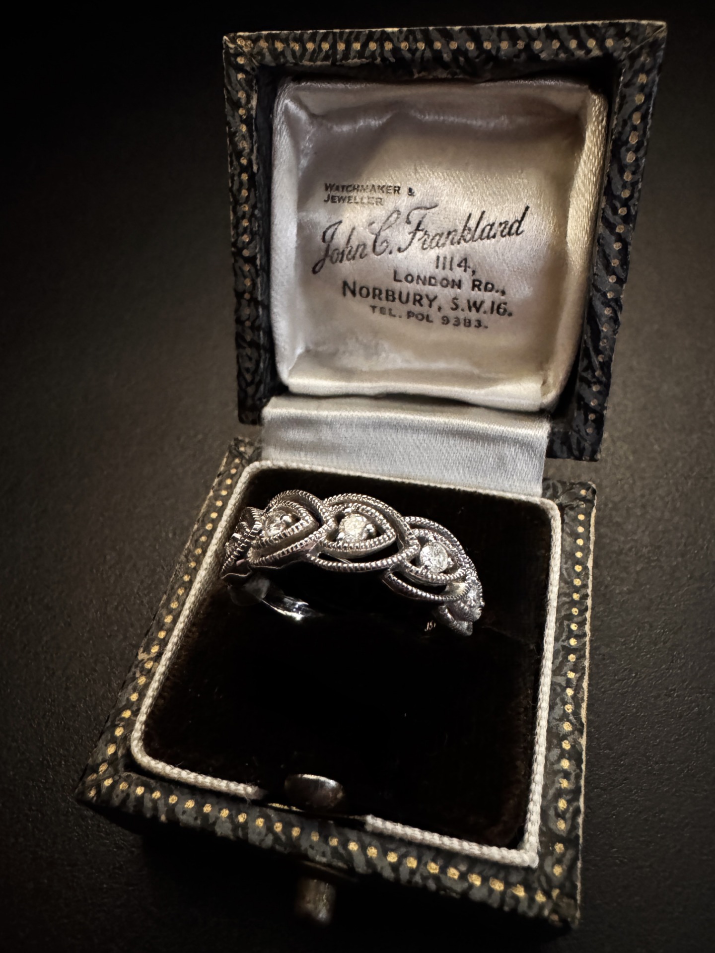 ANELLO A FEDINA IN ORO BIANCO 18K CON DIAMANTI – ELEGANZA ROMANTICA ANNI ’60