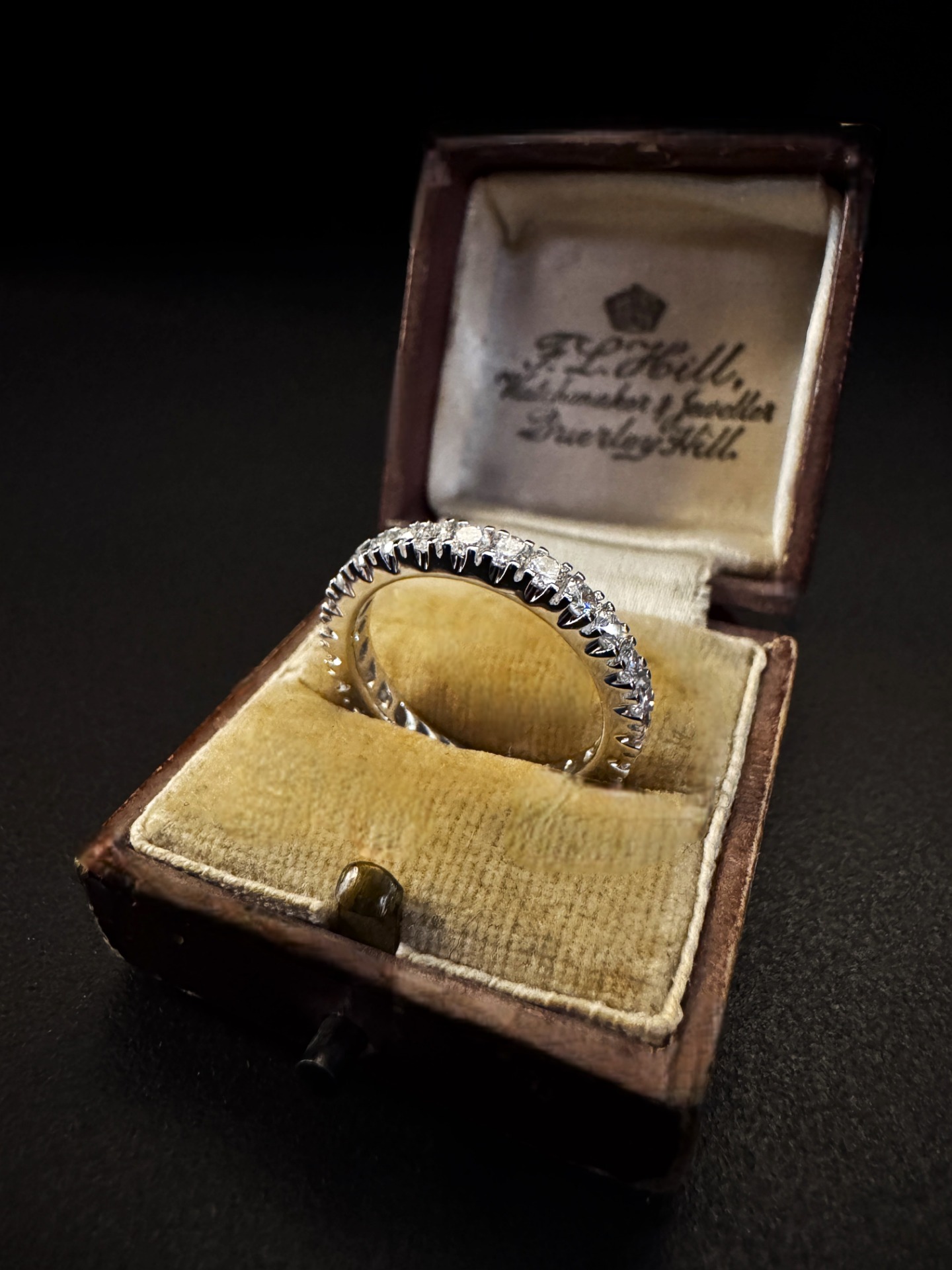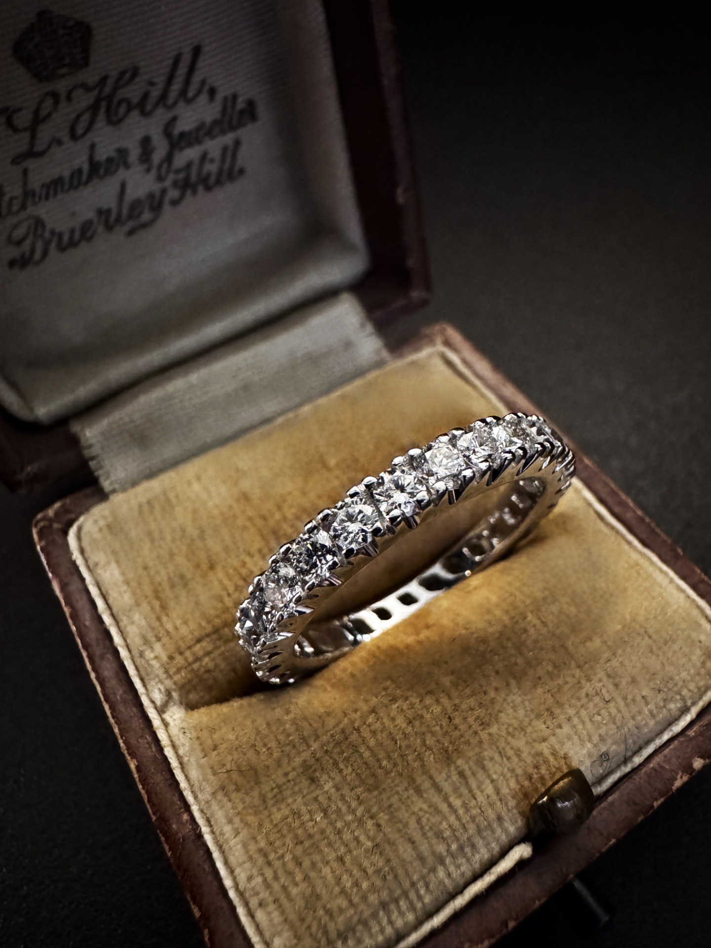 FEDINA IN ORO BIANCO CON DIAMANTI – ELEGANZA ICONICA ANNI ’70 Questa fedina degli anni ’70 è molto più di un semplice anello è una promessa di eleganza eterna, un simbolo di raffinatezza e stile che ha attraversato i decenni senza mai perdere il suo fascino. REALIZZAZIONE E DESIGN   • Realizzata in oro bianco, la fedina si distingue per la sua particolare linea perfetta, che avvolge il dito in un abbraccio di luce e splendore.   • Ogni diamante, magistralmente incastonato in castoni a quattro griffe, è posizionato per catturare la luce da ogni angolazione, creando un bagliore continuo e sofisticato.   • La montatura, robusta ma finemente rifinita, riflette la maestria della manifattura italiana dell’epoca, quando la precisione tecnica e l’estetica si fondevano in un equilibrio impeccabile. DETTAGLI CHE PARLANO DI ECCELLENZA   • Origine: Manifattura italiana, anni ’70   • Materiale: Oro bianco 18K   • Diamanti naturali: Taglio brillante rotondo, per una caratura stimata complessiva di 1.65 ct   • Montatura: Castoni a griffe, eseguiti con estrema precisione artigianale   • Misura: 14 UN GIOIELLO CHE RACCONTA UNA STORIA D’AMORE E DI LUCE Indossare questa fedina significa portare con sé il fascino intramontabile di un periodo di rinascita, di eleganza sobria e di raffinata semplicità. Ogni riflesso parla di eternità. È l’anello perfetto per suggellare una promessa, celebrare un’unione o semplicemente per donare luce a chi ama distinguersi con grazia e autenticità. Scopri questa creazione esclusiva nel nostro negozio o visita il sito www.GioielliGradara.it Ref. 4552 MT