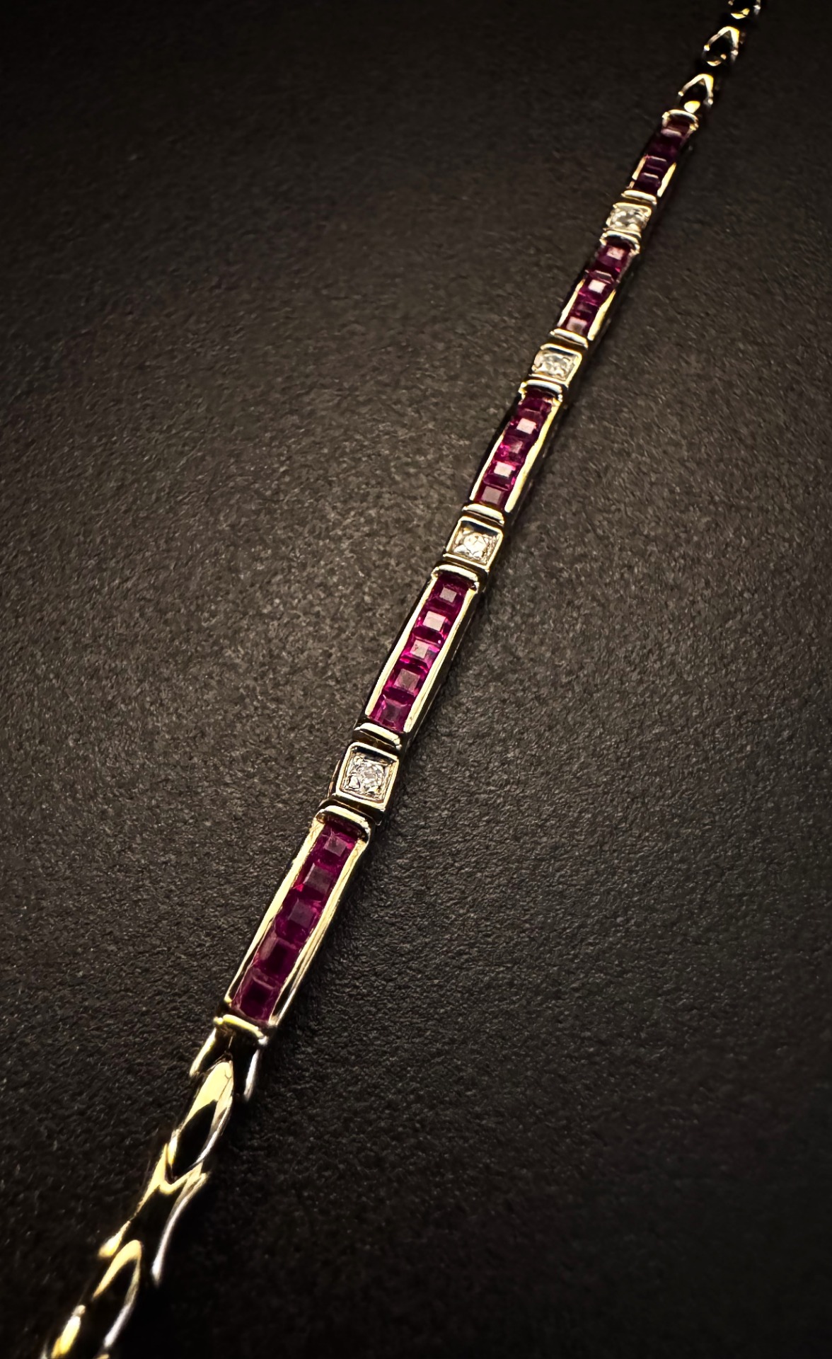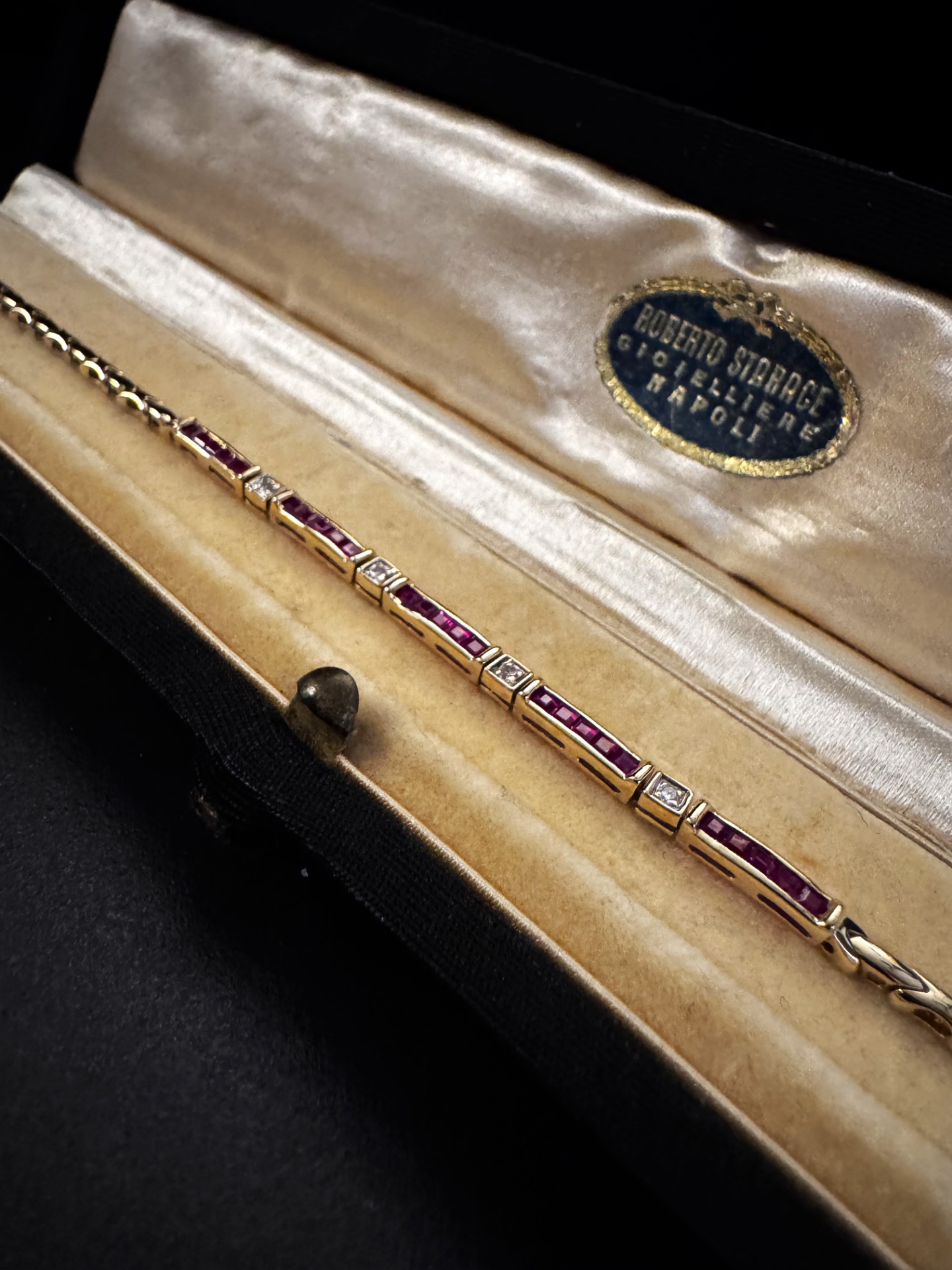 BRACCIALE IN ORO GIALLO CON RUBINI E DIAMANTI – RAFFINATA ELEGANZA INGLESE DEGLI ANNI ’70