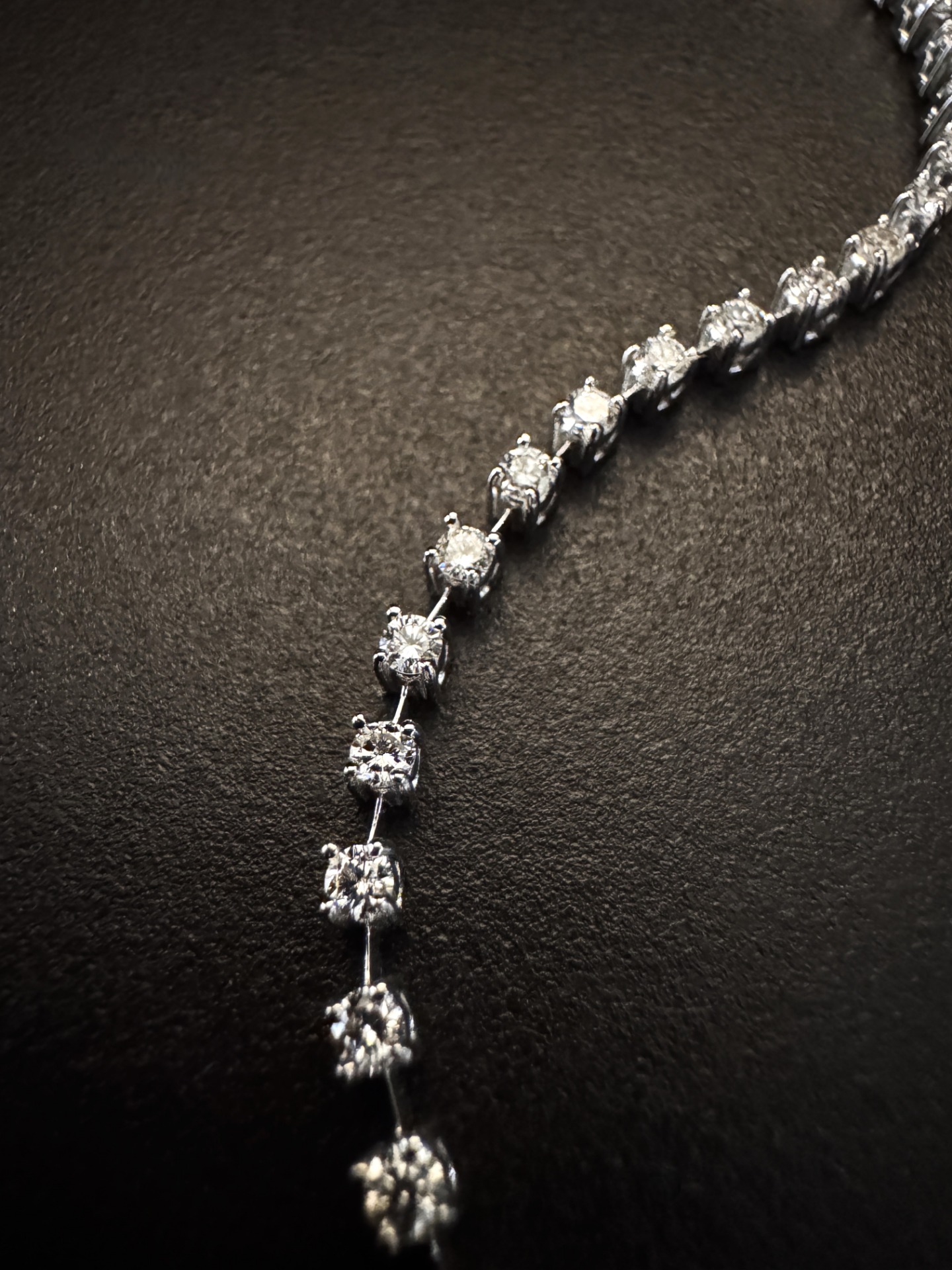 • Montatura a quattro griffes con barrette – Ogni diamante è incastonato con precisione e distanziato da sottili barrette che donano leggerezza, come una cascata di luce che avvolge il polso.