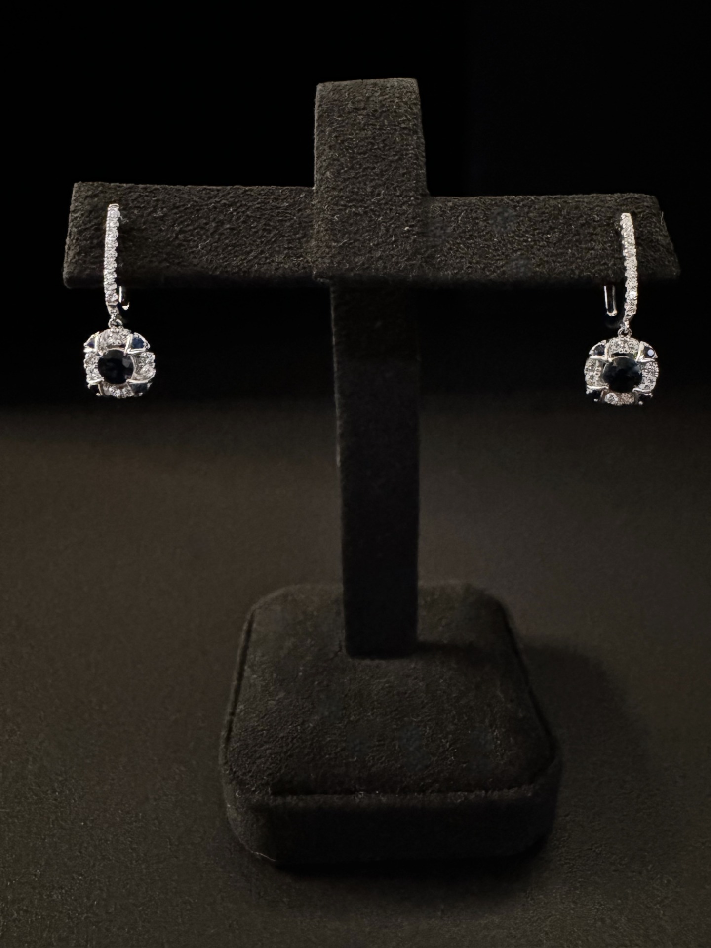 ORECCHINI PENDENTI IN ORO BIANCO CON ZAFFIRI E DIAMANTI – ELEGANZA AMERICANA ANNI '60