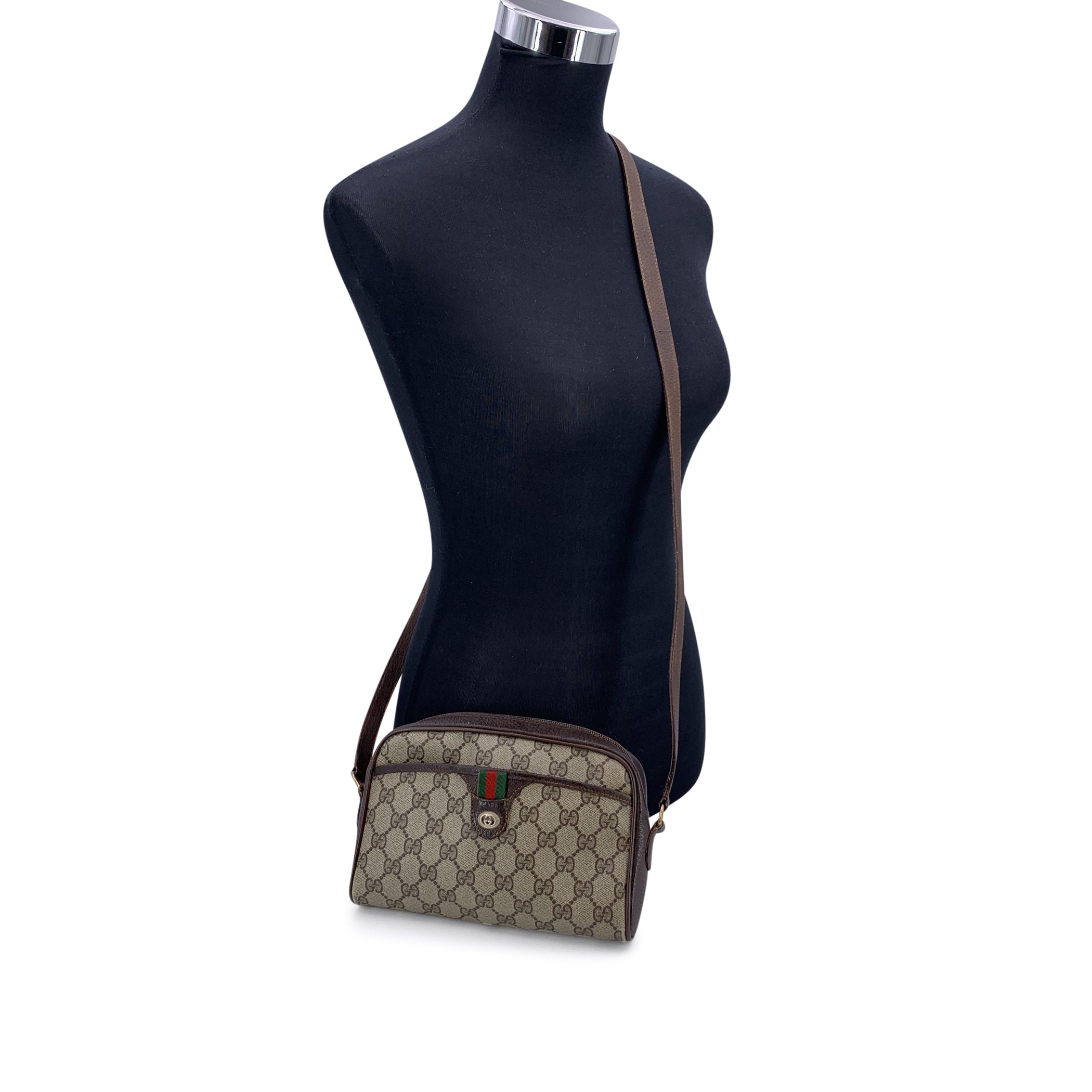 GUCCI Borsa a Tracolla Vintage in Tela Col. Marrone Ophidia Zip S