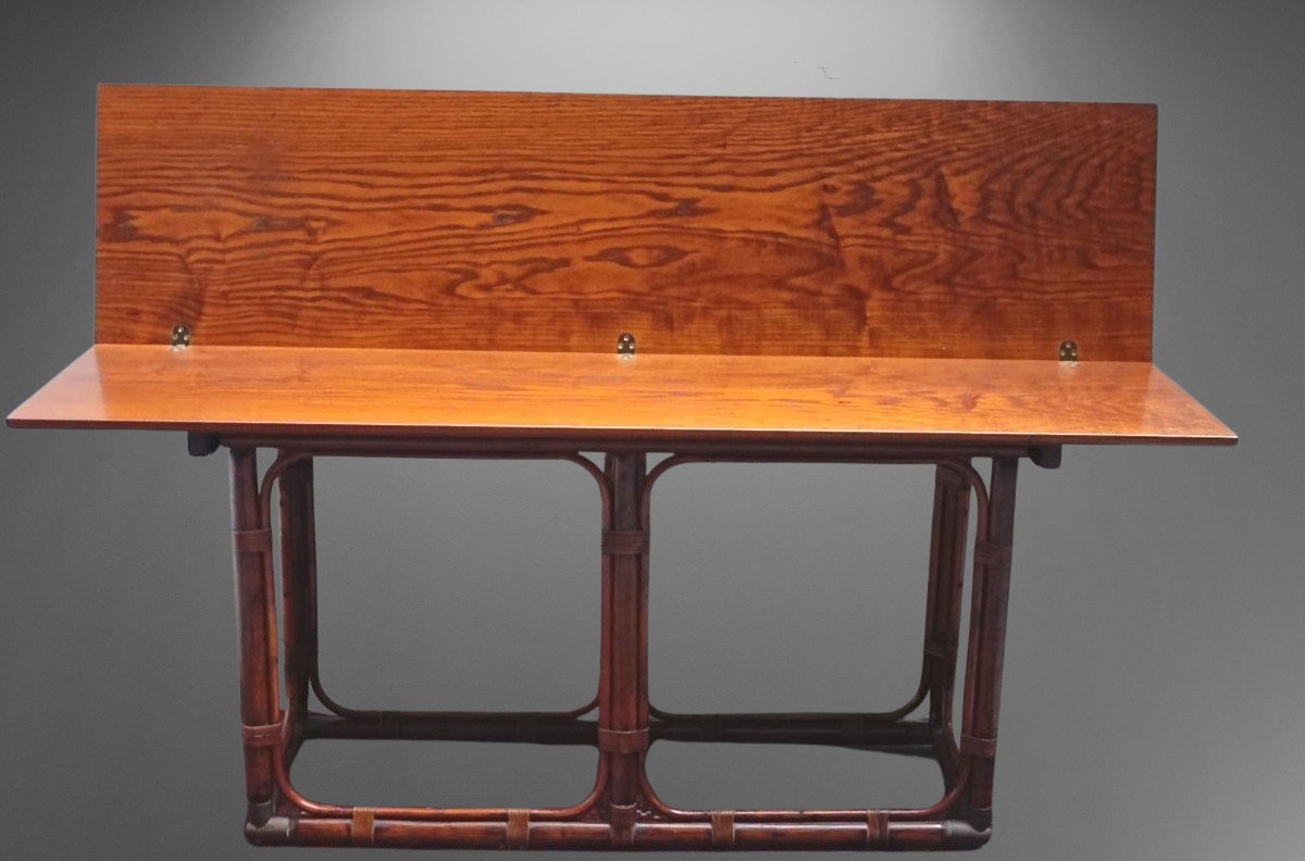 Questo straordinario tavolo design in palissandro degli anni ’80, modello T5, firmato Tito Agnoli per Bonacina, rappresenta un perfetto equilibrio tra eleganza, funzionalità e innovazione. In ottime condizioni generali, misura cm 180 x 45 (90) x h75. Il suo piano modulare e la forma raffinata lo rendono, senza dubbio, un arredo capace di catturare l’attenzione in qualsiasi ambiente. Tuttavia, ciò che colpisce maggiormente è l’armonia tra la calda tonalità del palissandro e la pulizia delle linee geometriche, tipiche del design italiano anni Ottanta.