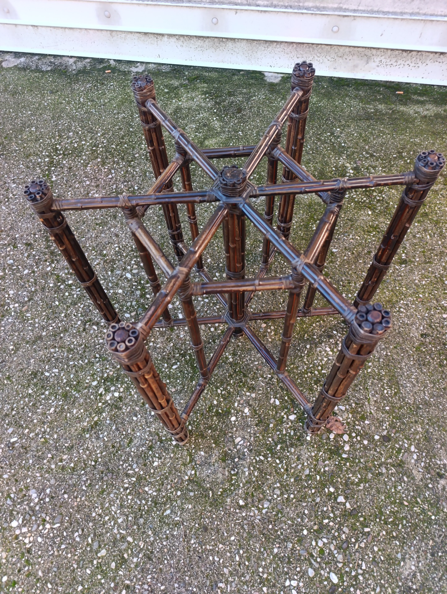 Tavolo in vimini con legatura in pelle piano in vetro originale.Architetto MC Guire San Francisco.