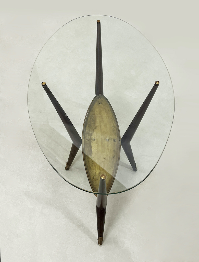 Coffee table 1950 - vetro, ottone e legno laccato