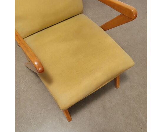 Coppia di poltrone on legno di faggio e imbottitura a molle, rivestimento in tessuto. Da restaurare.