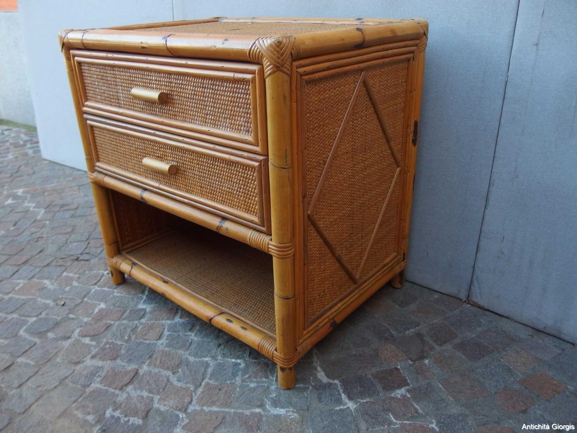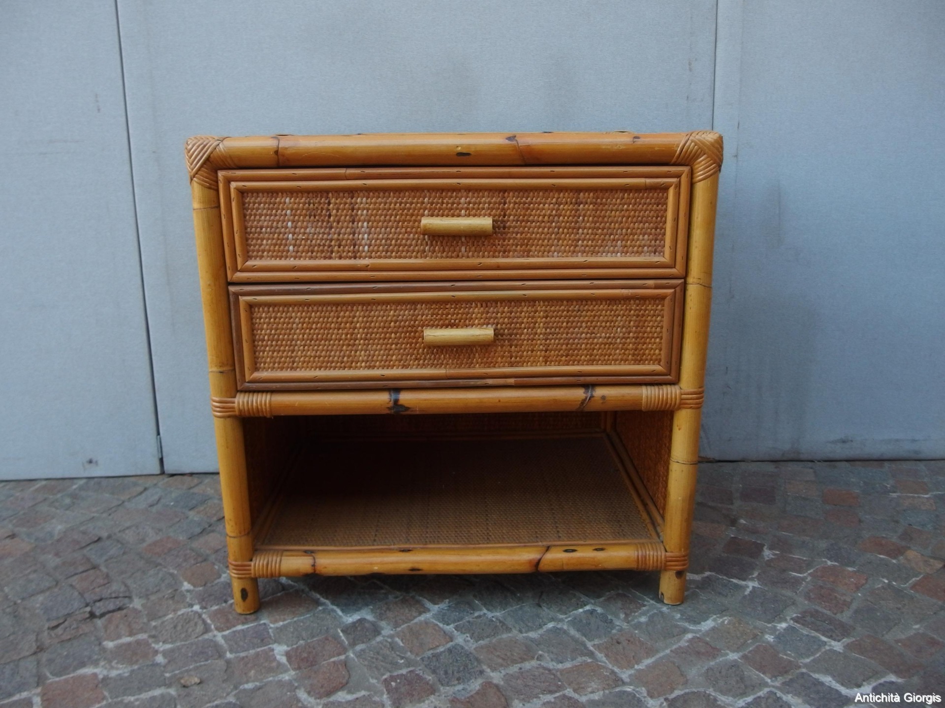 COMODINO IN VIMINI A DUE CASSETTI EPOCA 900