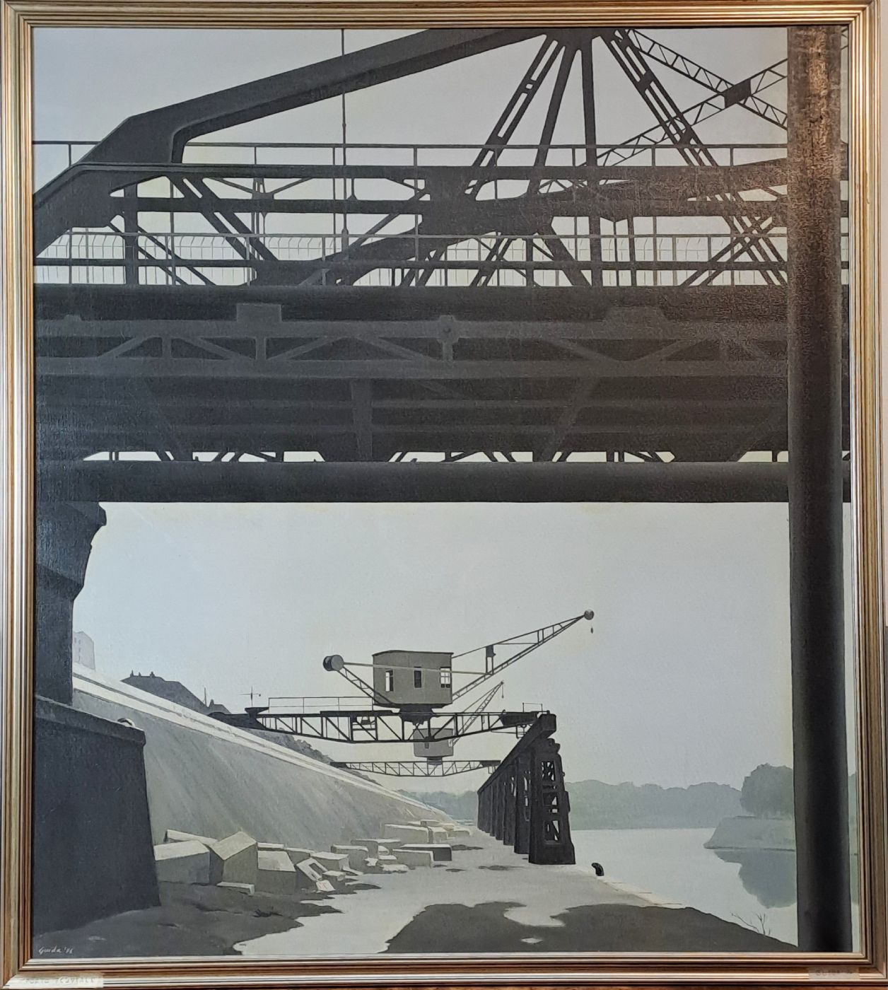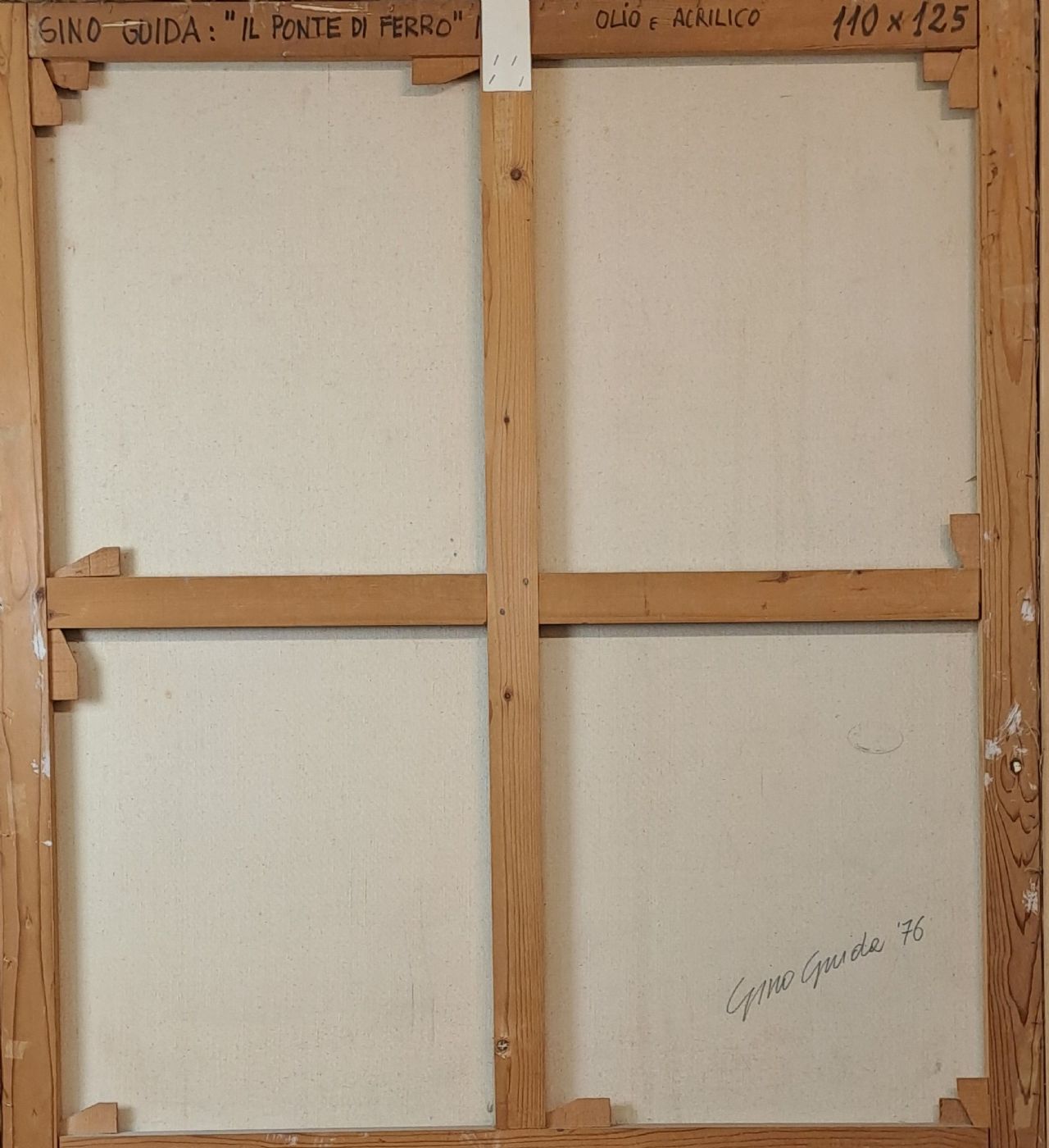 Olio e acrilico su tela di Gino Guida – “Il ponte di ferro “ Anno 1976 Dimensioni 110 x 125 cm Si rilascia regolare certificato di autenticità con foto. Assicuriamo una risposta alle vostre mail entro le 24 ore ISCRITTO ALL' ALBO PERITI E CTU PRESSO IL TRIBUNALE DI LA SPEZIA