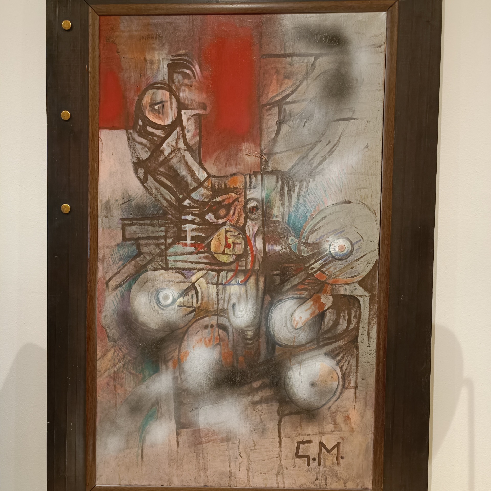 L'uso della tecnica mista dona alla composizione una texture vibrante e intensa, mentre i colori decisi e le linee audaci raccontano la potenza espressiva del periodo. Ogni pennellata trasmette emozione, richiamando la brutalità estetica tipica del movimento, e al tempo stesso rivelando una sensibilità profonda. Il contrasto tra le superfici grezze e la delicatezza cromatica crea un equilibrio sorprendente, capace di catturare lo sguardo e stimolare la riflessione.