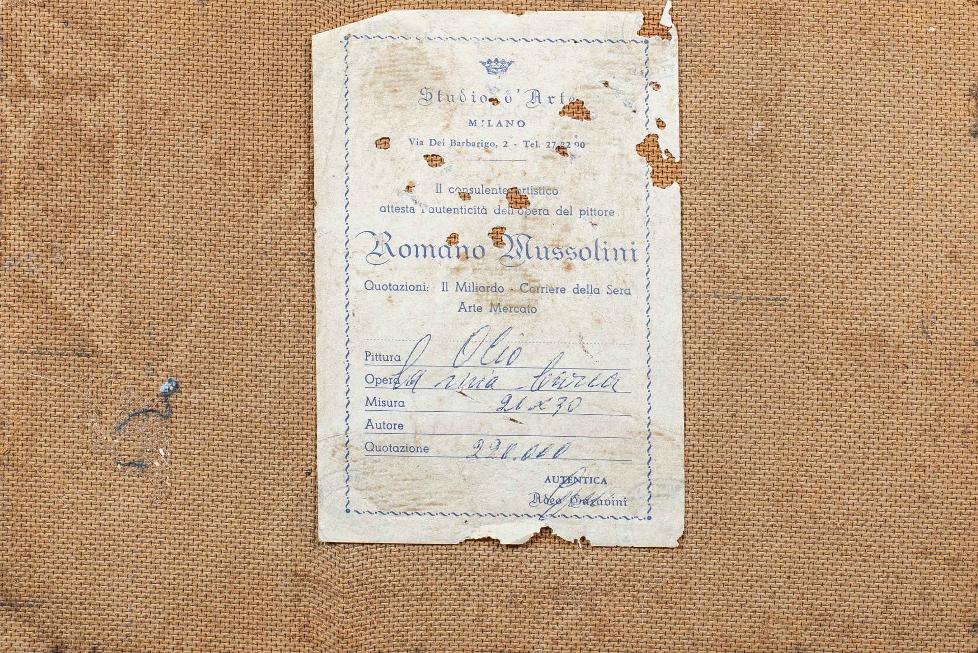 Romano Mussolini (Forlì 1927 - Roma 2006) - Paesaggio con barca. 20 x 30 cm. Olio su faesite, senza cornice. - Opera firmata in basso sx: “Romano Mussolini”. - Autentica Studio d’Arte Roma (vedi etichetta al retro). Condition report: Ottimo stato di conservazione della superficie pittorica, presenti segni di invecchiamento e usura. - Tutte le spedizioni in UE sono gratuite ed imballate professionalmente. - Ogni articolo viene venduto con certificato di autenticità con validità legale. - Ulteriori approfondimenti sul condition report sono disponibili su richiesta. - Viezzi Arte garantisce qualità e professionalità a prezzi competitivi, contattaci su info@viezziarte.it o via What’sApp al +39 3402841279. *Messaggio rivolto agli acquirenti non italiani: Tieni presente che quest'opera non ha ancora ottenuto il certificato di libera esportazione dall'Italia presso la Soprintendenza dei Beni Culturali. Questo documento attesta che l'opera non fa parte del patrimonio culturale italiano. Normalmente i tempi di rilascio degli attestati sono 40 giorni dalla data di appuntamento: La nuova normativa in vigore dal 2021 prevede, per importi dichiarati inferiori a 13.500€, tempi più brevi a discrezione della commissione di esperti. Tutti i costi di questa operazione sono inclusi.