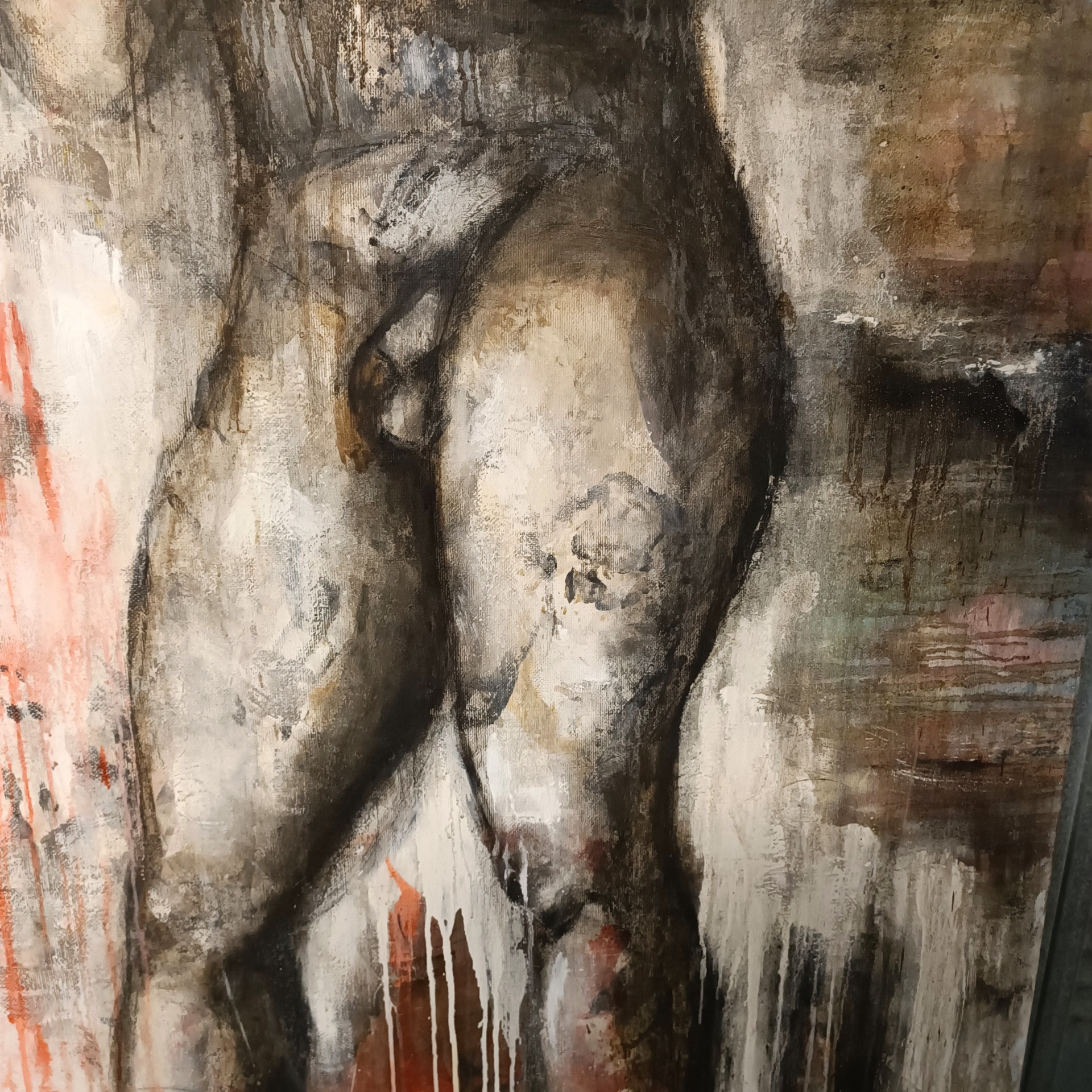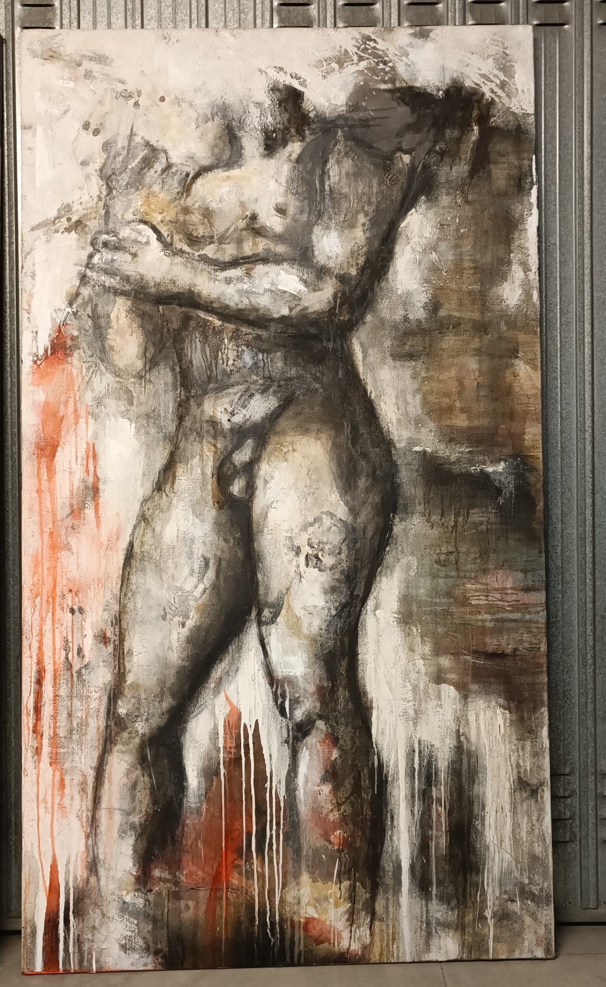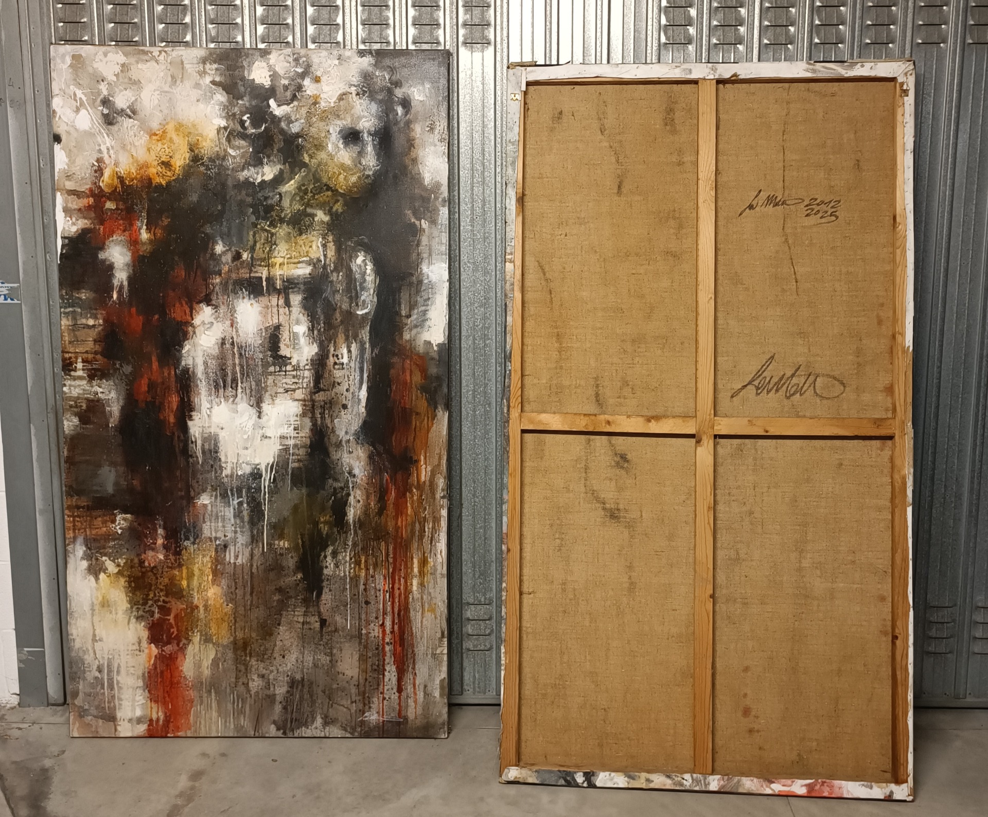 Una coppia di affascinanti olii su tela che rappresentano un nudo figurativo contemporaneo, firmati da artista moderno. Entrambe le opere dialogano tra loro in un gioco visivo e concettuale unico: il primo dipinto termina volutamente senza la testa della figura, che invece prosegue nel secondo quadro, creando un effetto di continuità sorprendente e raffinato. In ottime condizioni generali, le tele misurano cm 180 x 100 ciascuna, dimensioni importanti che ne amplificano la presenza scenica e l’impatto estetico.