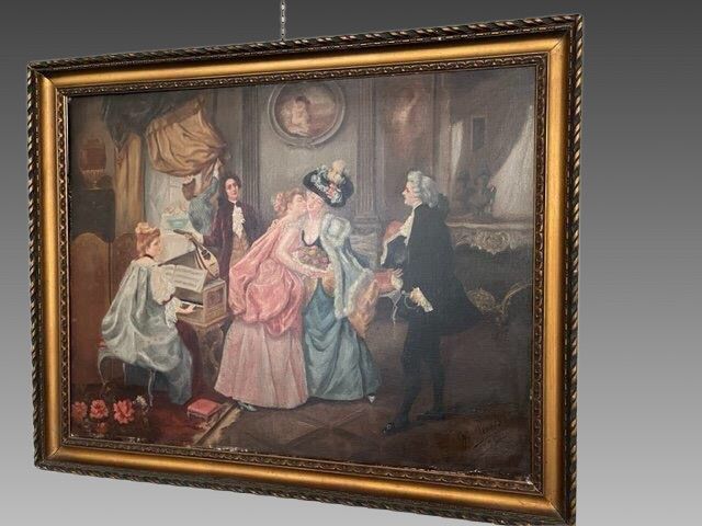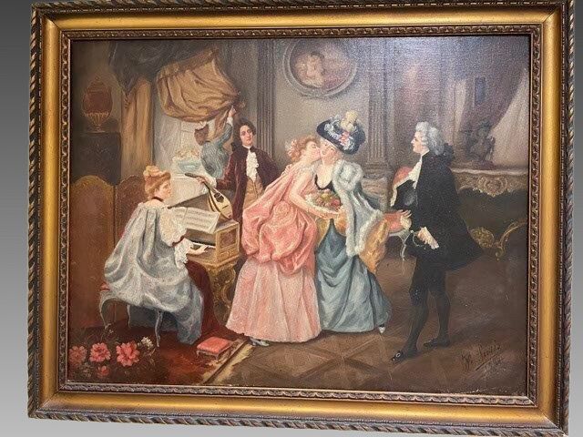 DIPINTO OLIO SU TELA " SCENA DI BALLO "