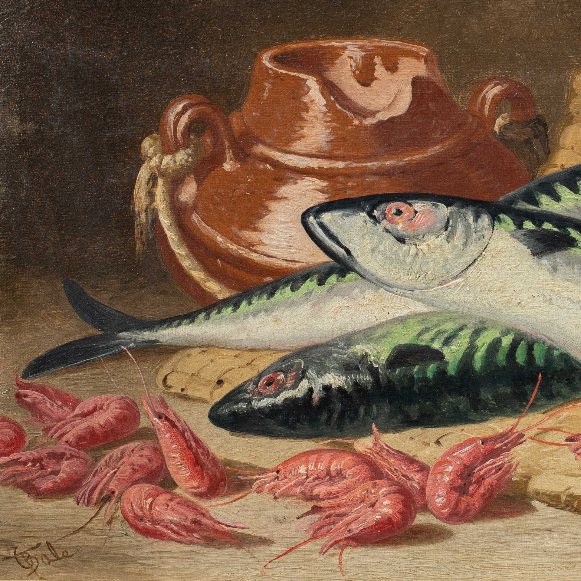 Charles Thomas Bale (British, 1866 - 1895) - Natura morta di pesci e gamberi.