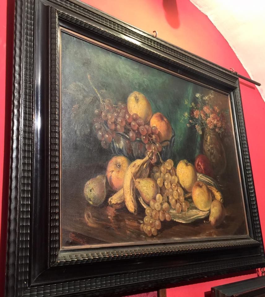 Natura morta olio su tela cornice coeva misure tela 67x48 firmato in basso a sinistra