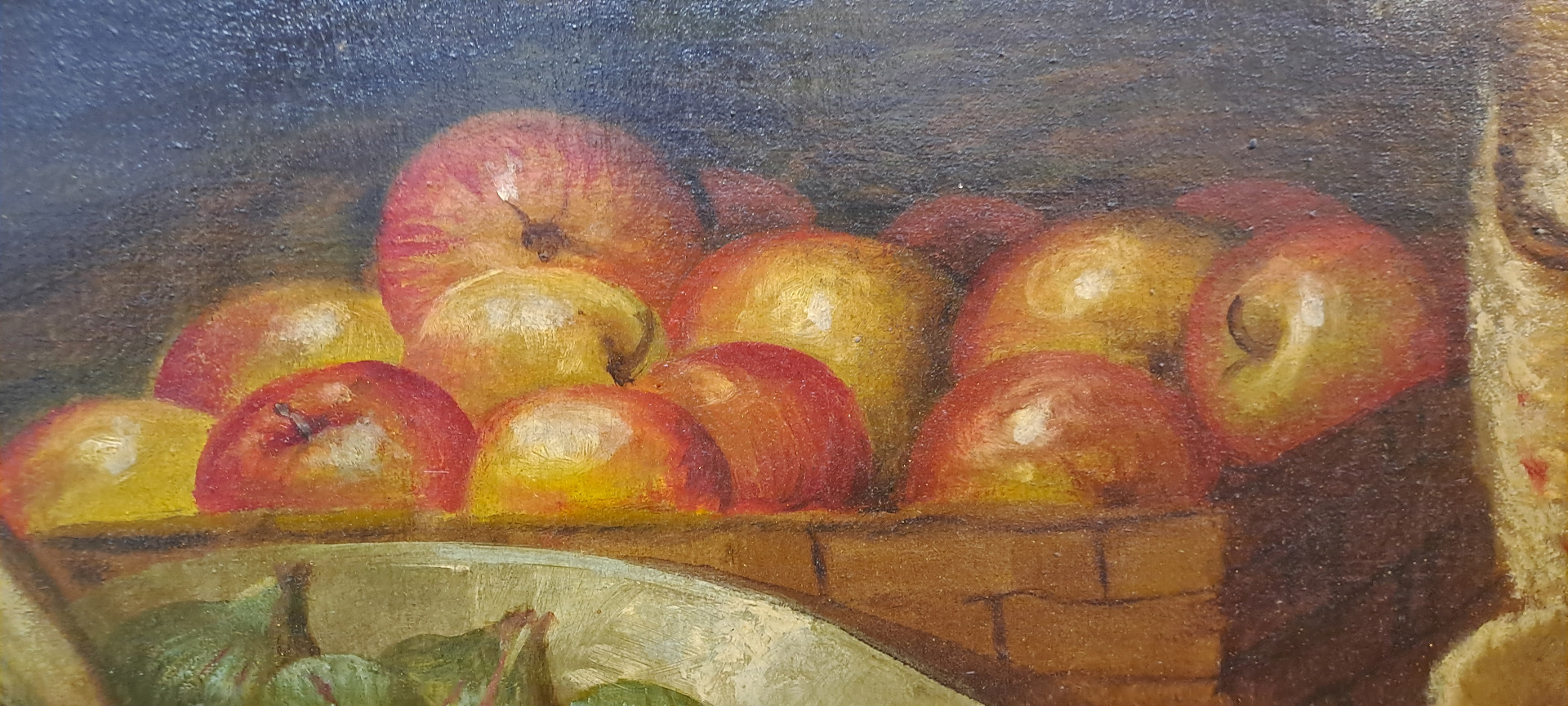Note Aggiuntive: Questo grande dipinto è un esempio significativo della natura morta di inizio Novecento, che riprende temi e stilemi della grande pittura barocca, adattandoli al gusto dell'epoca. La ricchezza dei dettagli e la cura nella rappresentazione degli elementi lo rendono un'opera di grande impatto visivo .