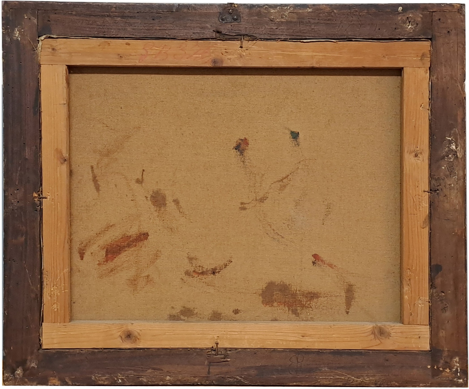 Le dimensioni sono: 74 x 62 compresa la cornice coeva, 61 x 49 cm la sola tela.
