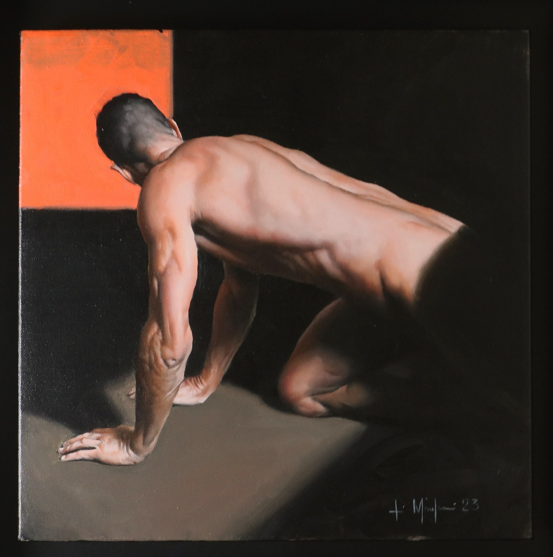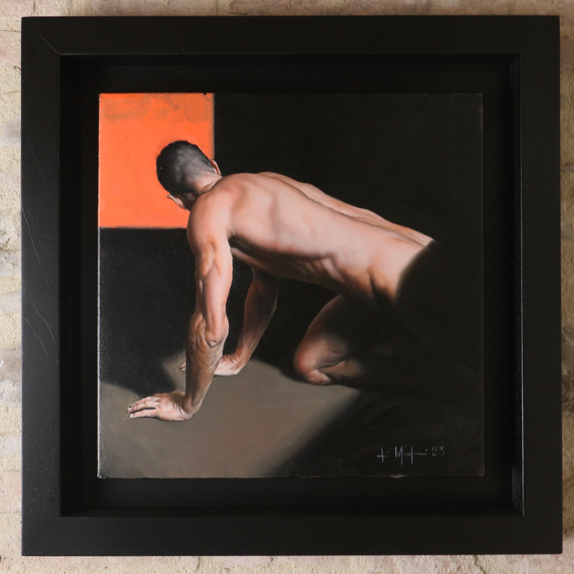 Inoltre, l’attenzione meticolosa ai dettagli è uno dei tratti distintivi dell’opera di Filippo Manfroni. Infatti, con abilità magistrale, l’artista cattura la luce, le ombre e ogni minimo particolare, dando vita a un nudo dipinto che sembra quasi uscire dalla tela. Di conseguenza, l’effetto iperrealistico ci lascia incantati, stupiti dalla perfezione della sua esecuzione. Eccellente la condizione, misura cm.65×65 con cornice e cm.40 x 40 la tela.