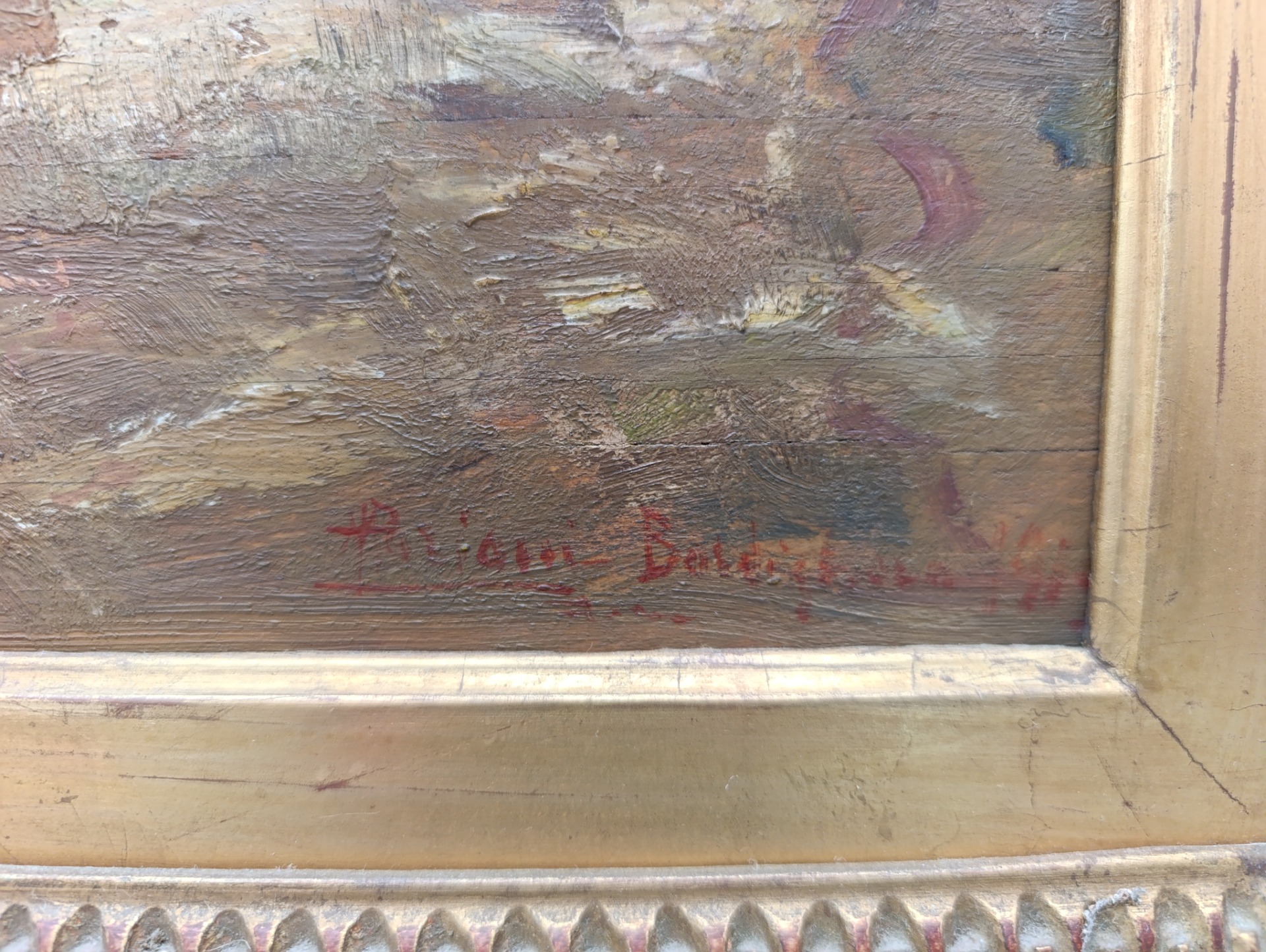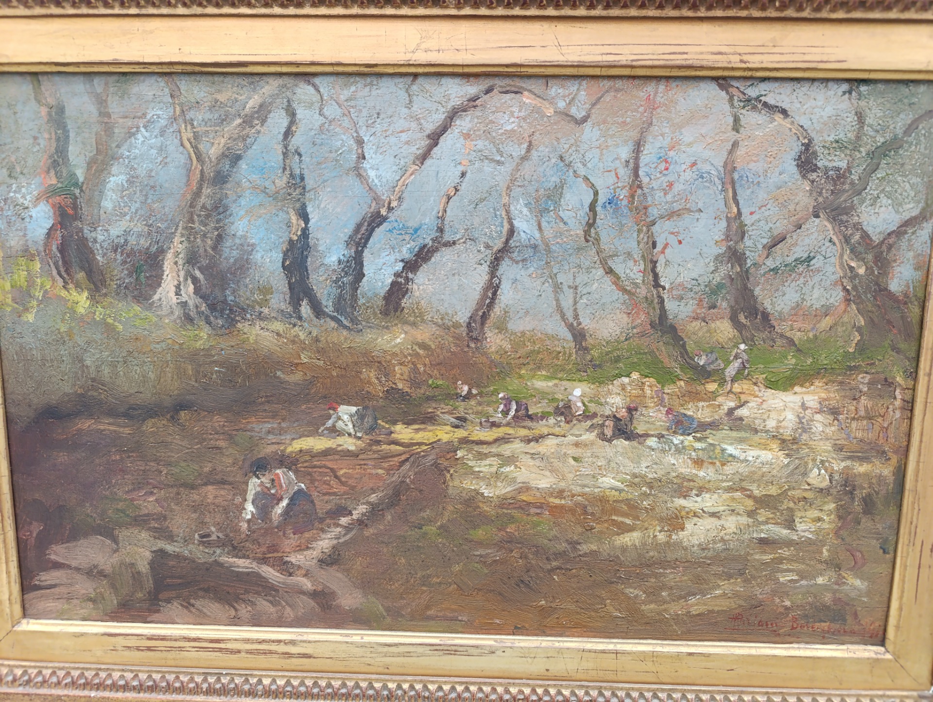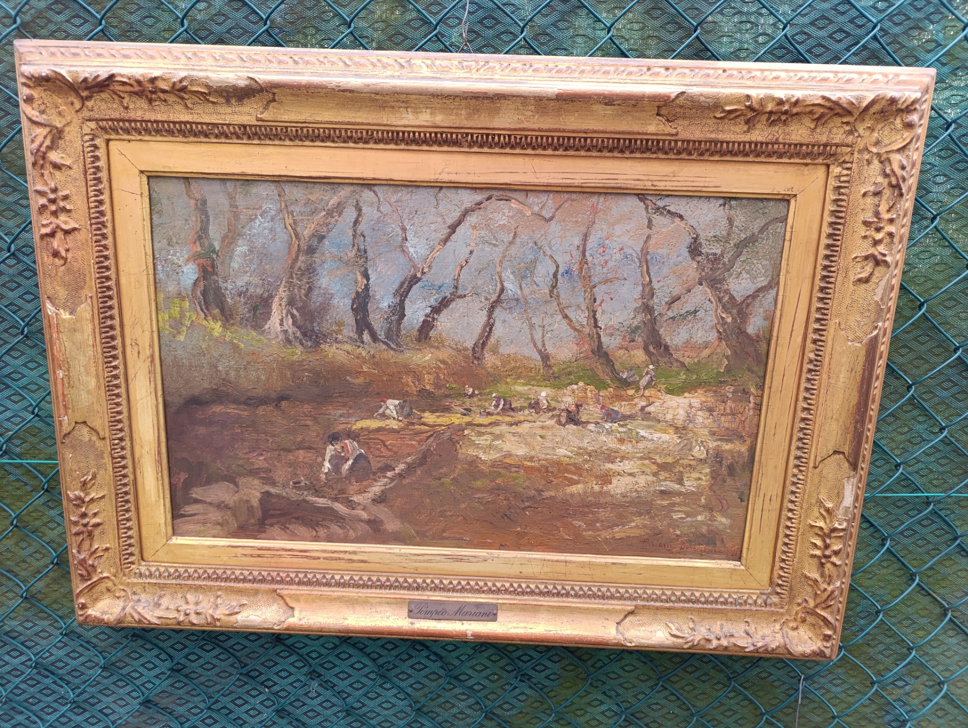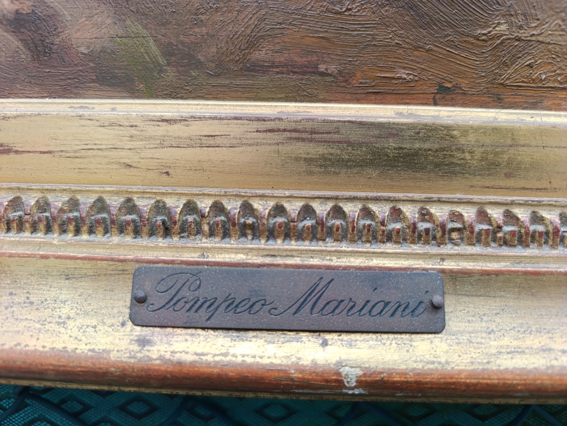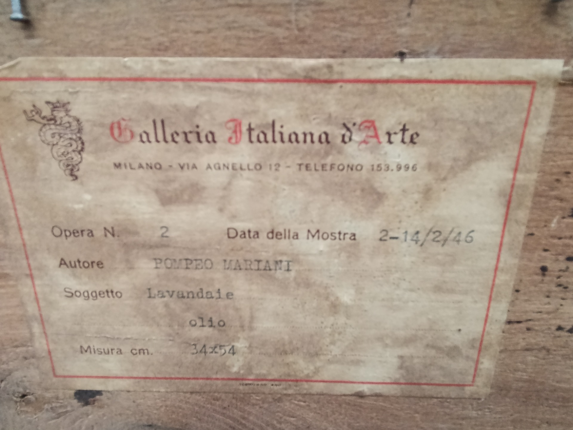 Dipinto di tavola di Pompeo Mariani firmato e datato.Titolo : le lavandaie Mis : Tela 54x34 Cornice 72x52 Siamo a vostra disposizione per domande o foto