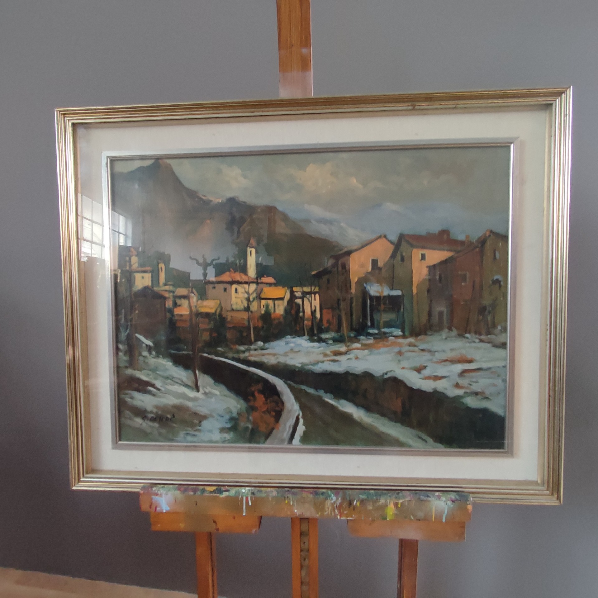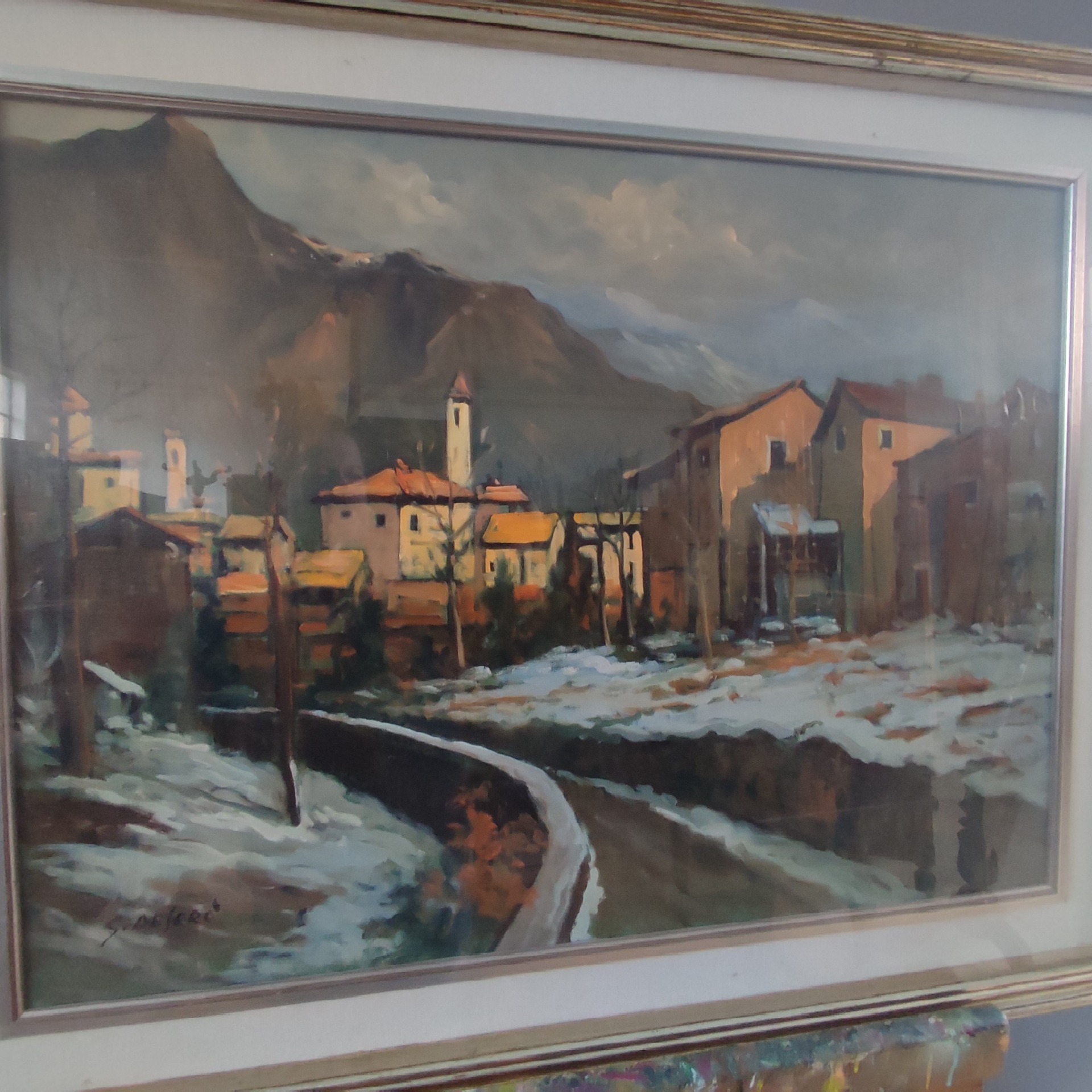Paesaggio dipinto da Gino Deserò nato a Genova nel 1919 operava a Bormio.Tela 60x80 Cornice 80x100