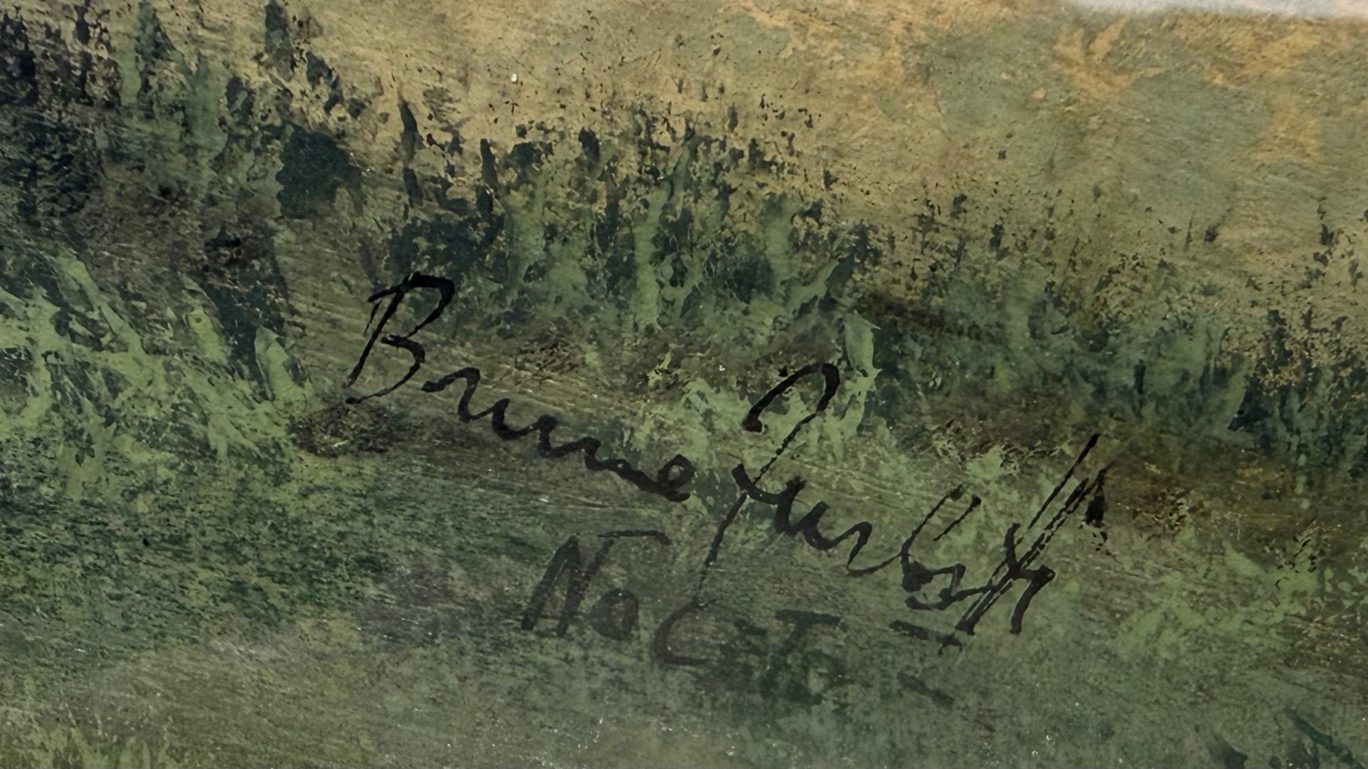 Dipinto tempera su cartoncino con soggetto paesaggio boschivo.Firma Bruno Furlotti.Noceto.Cornice:Cm 53x43. Dipinto:cm 39x28.