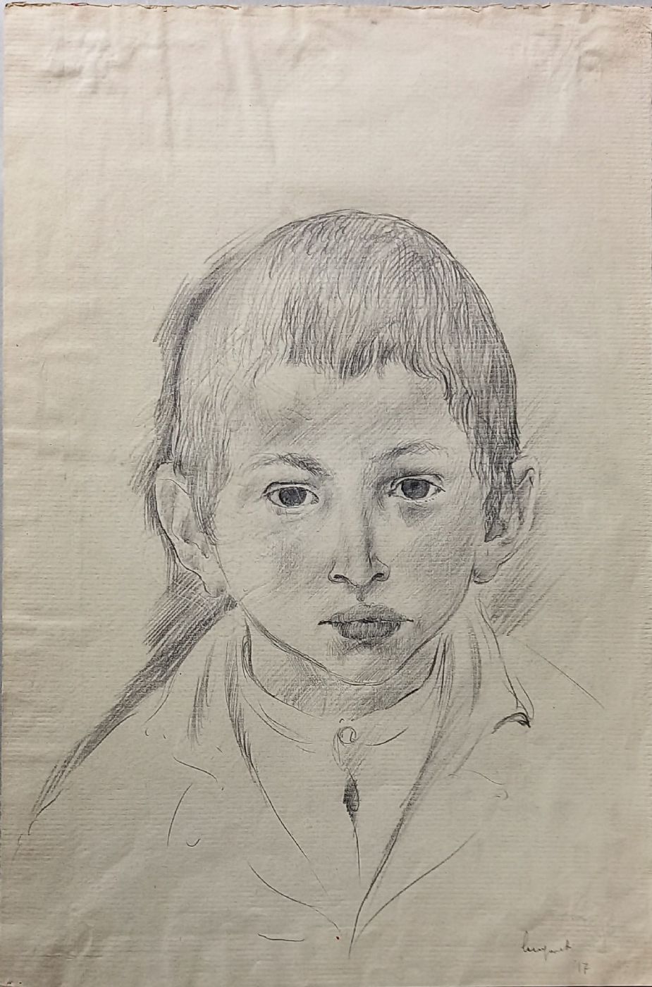 Ritratto a matita di ragazzo dell'età di circa 10 anni, riconducibile alla serie di ritratti di questo stesso soggetto realizzati poco prima del 1935 a Valpiana (Valle Brembana), località di villeggiatura estiva della famiglia Longaretti.