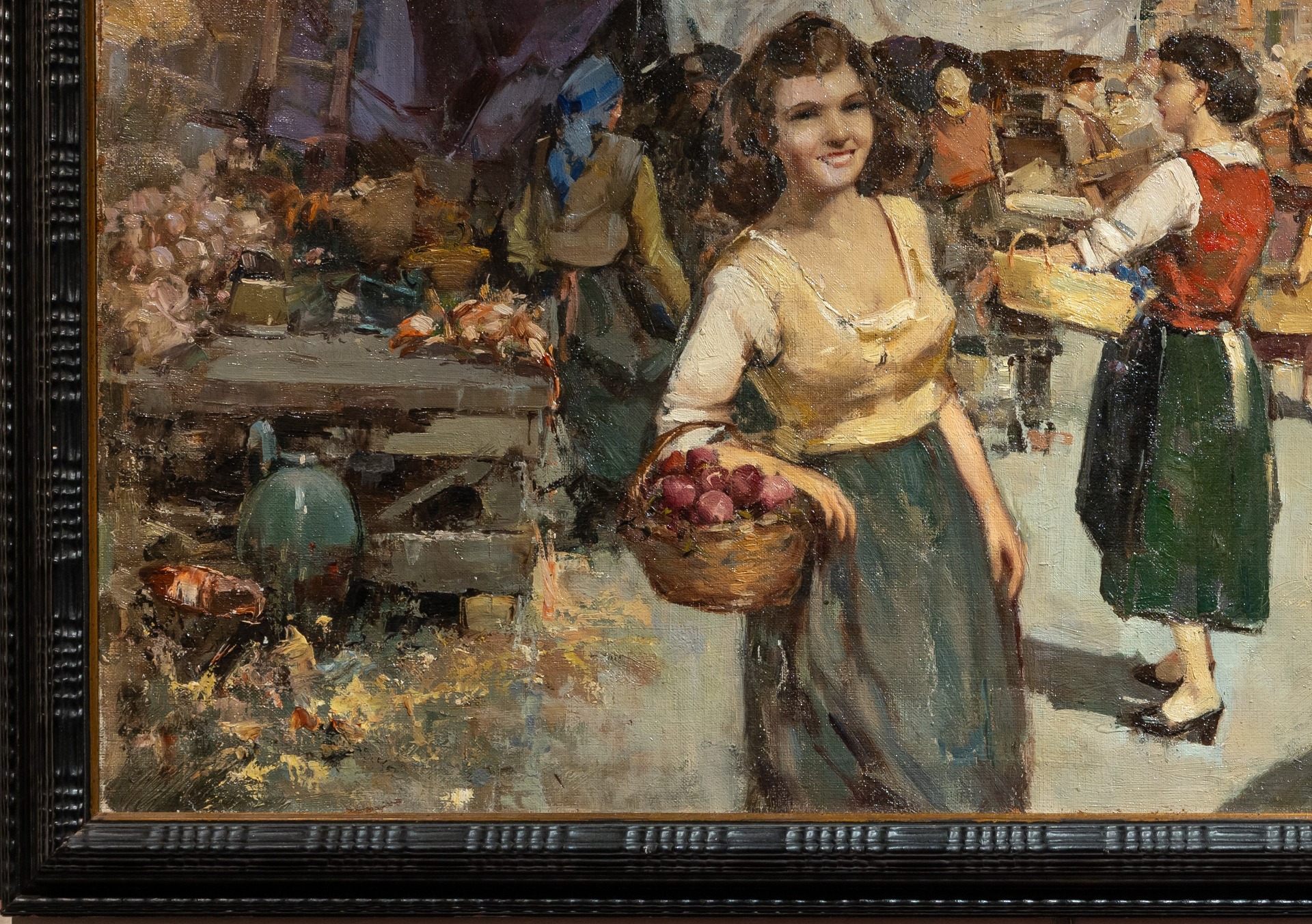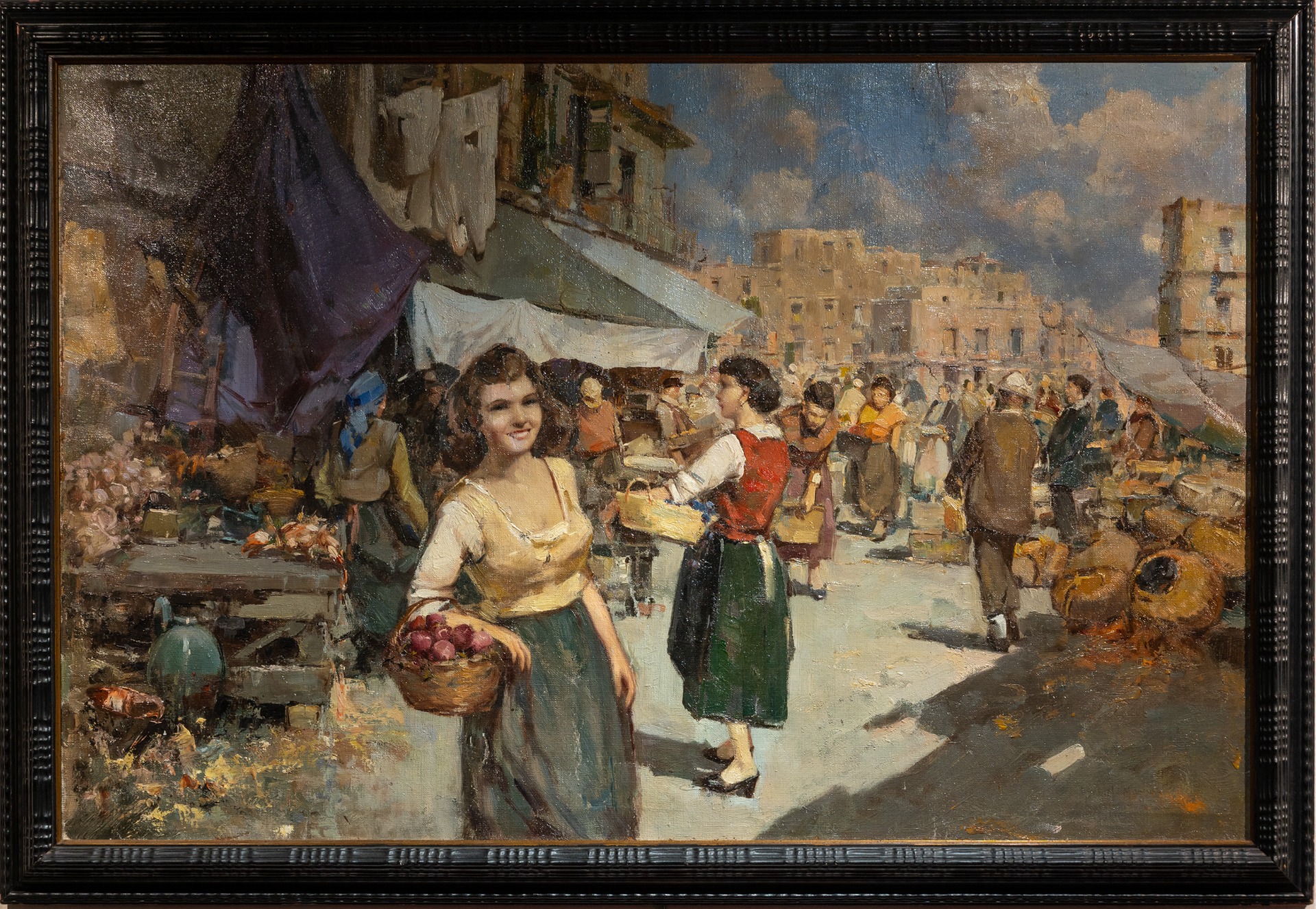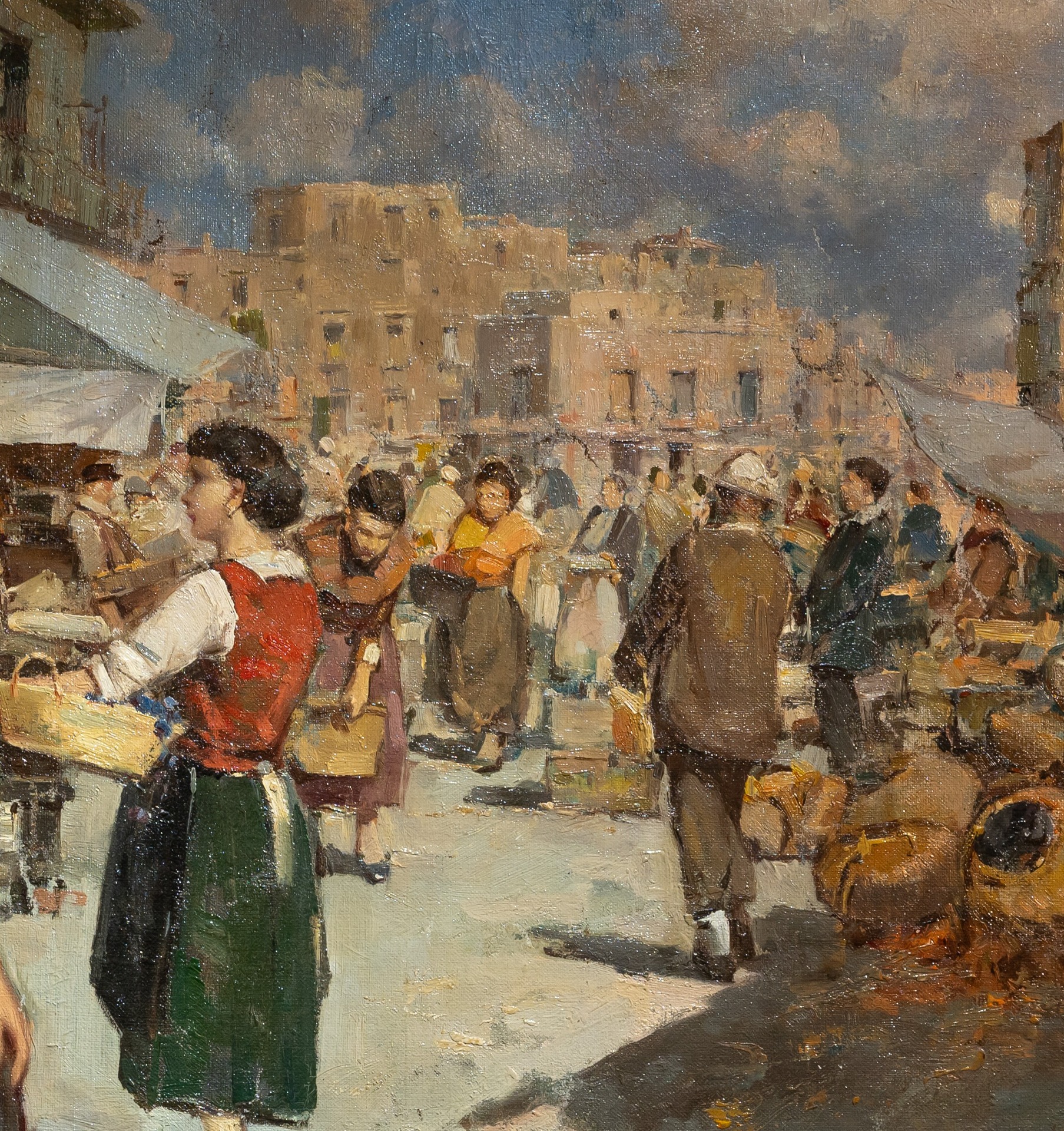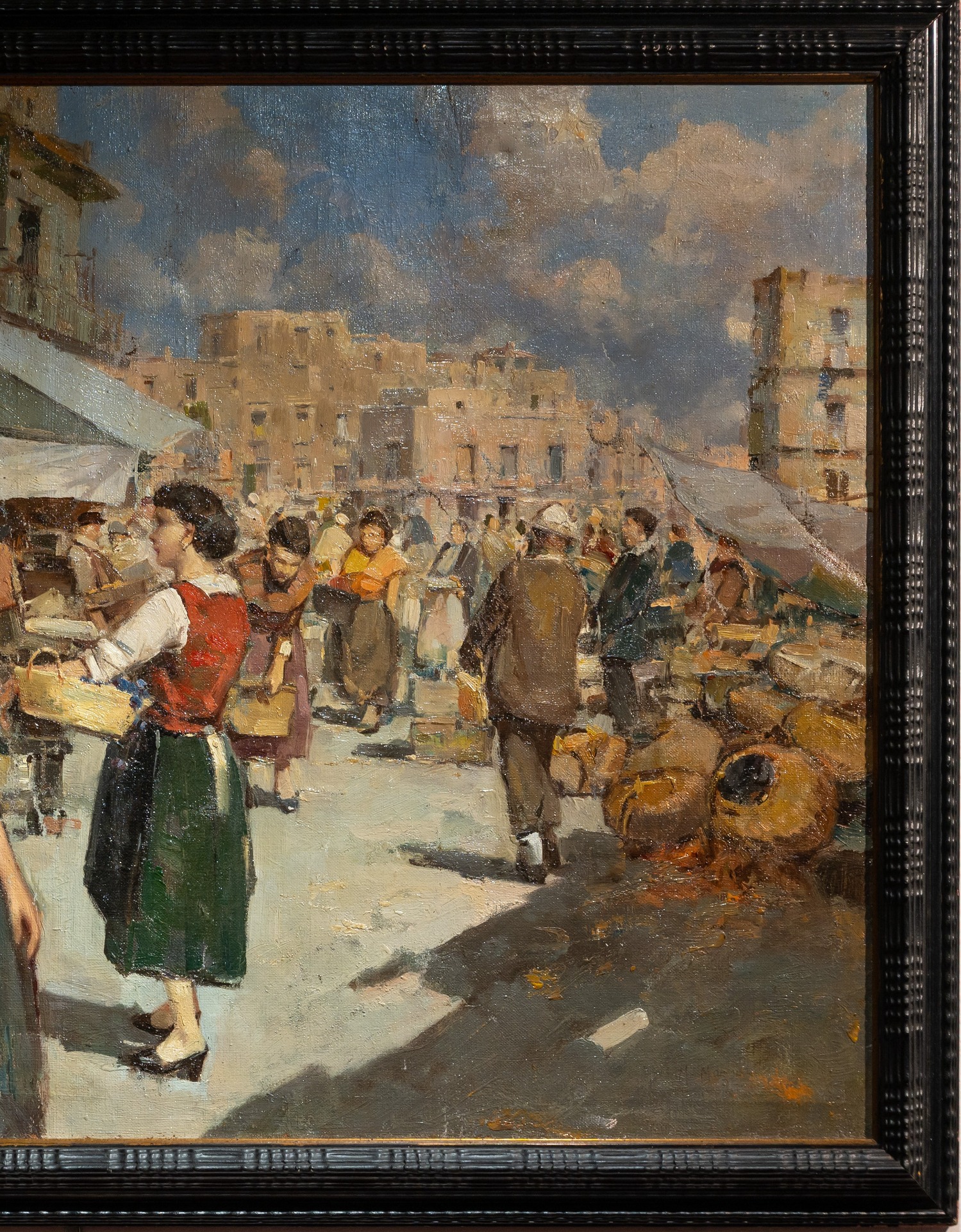 Mercato napoletano - Dipinto firmato - XX secolo - olio su tela