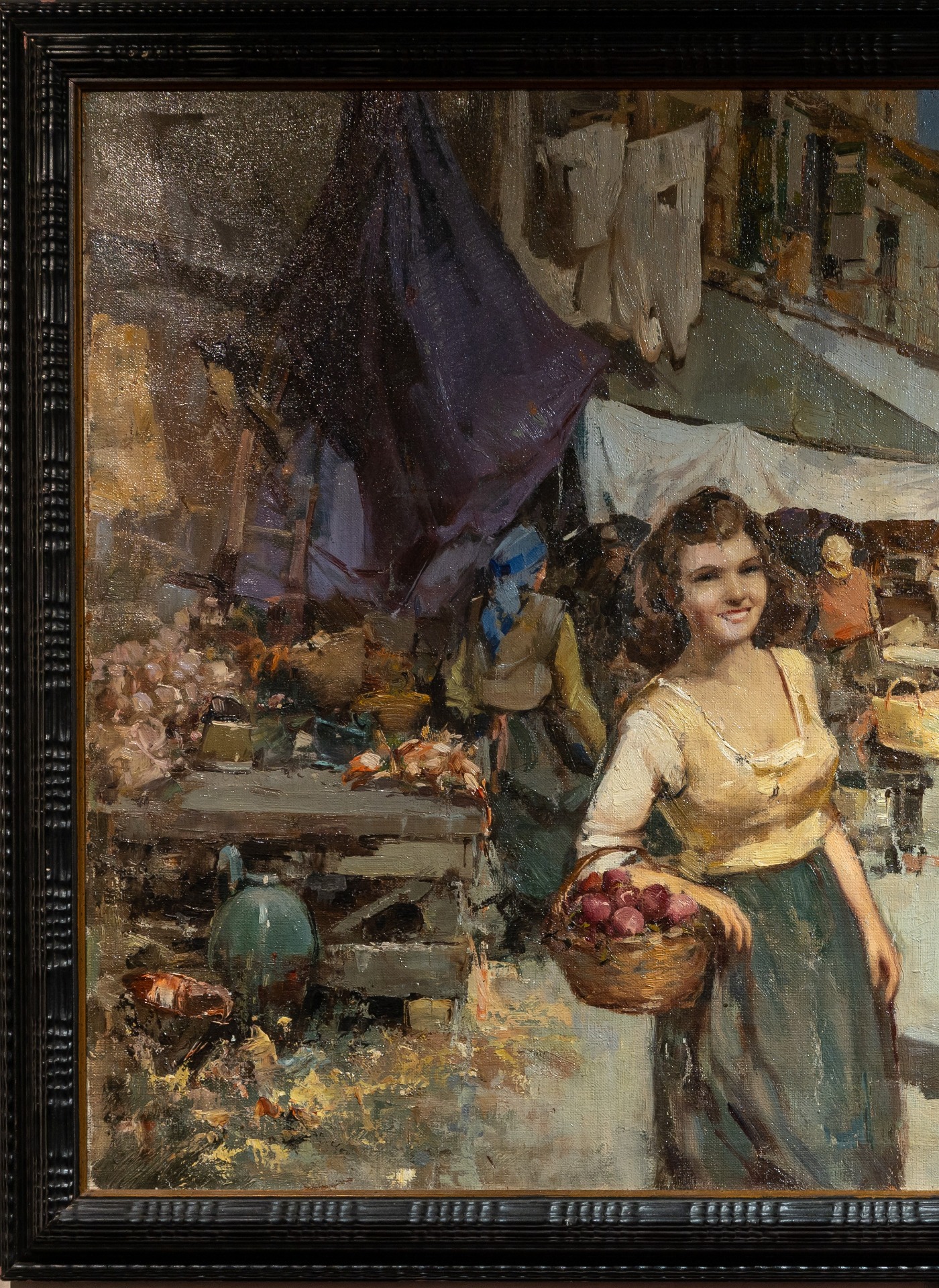 Mercato napoletano - Dipinto firmato - XX secolo - olio su tela