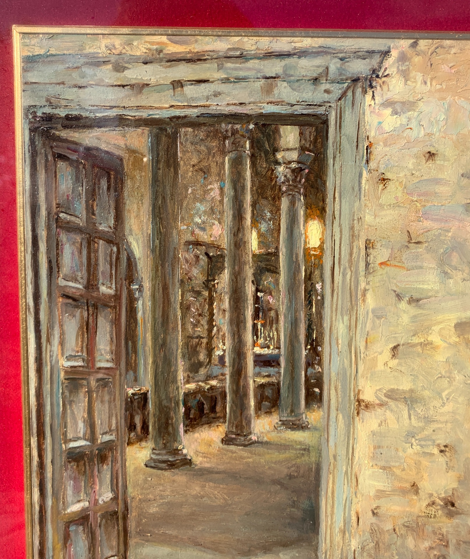 Sebastiano Garbin (Attivo a Trieste nel XX sec.) - Interno della cattedrale di Parenzo. 35 x 28 cm senza cornice, 47 x 39 cm con cornice. Olio su faesite, entro passe-partout in legno dorato. - Opera firmata in basso sx: “S. Garbin”. Condition report: Buono stato di conservazione della...