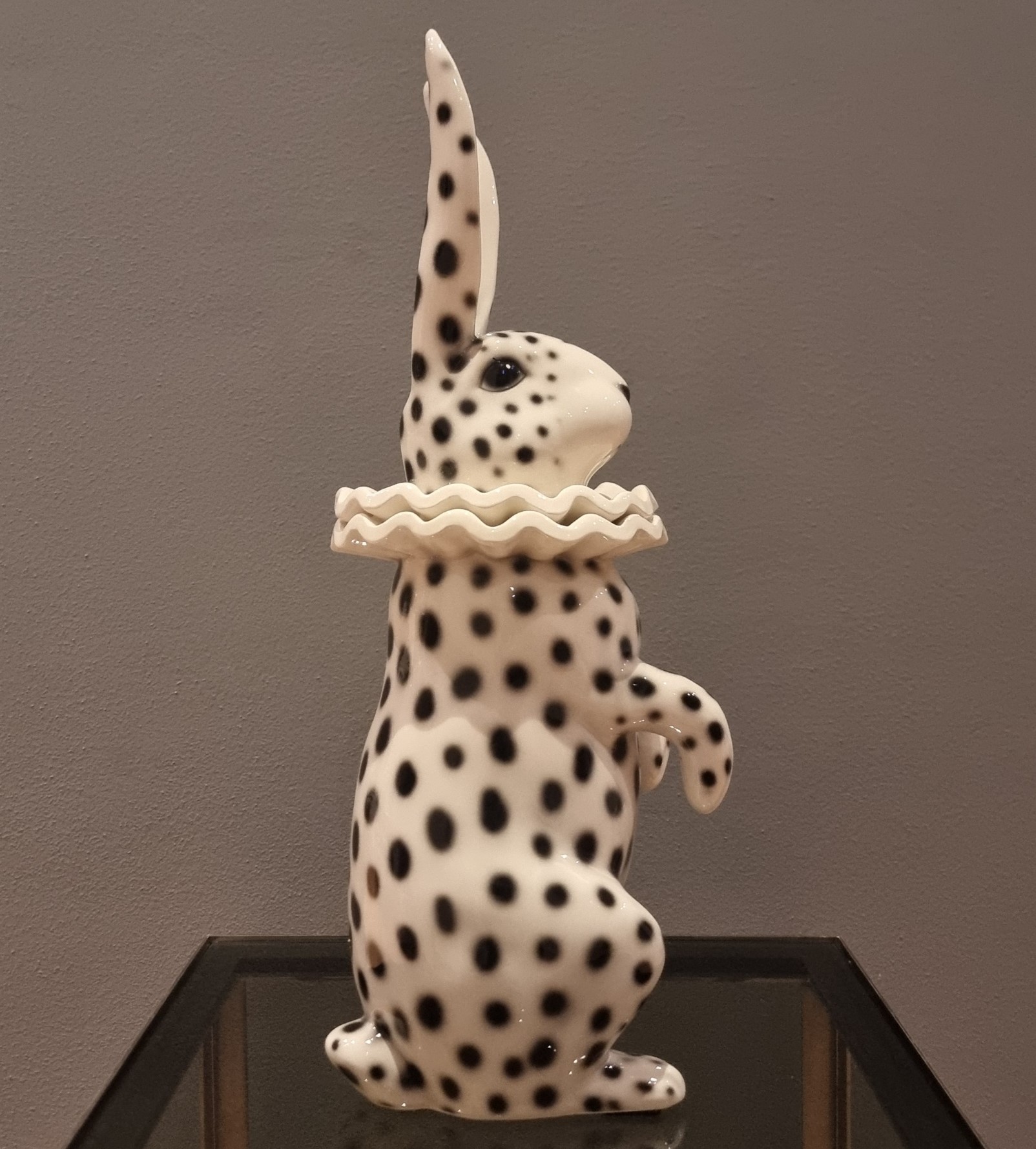 Per gli amanti dell'arte, del vintage o delle decorazioni fuori dal comune, questo coniglio in ceramica rappresenta un'idea regalo straordinaria. La sua bellezza non passa inosservata e il richiamo al tenero personaggio di Pierrot lo rende ancor più poetico e apprezzato.