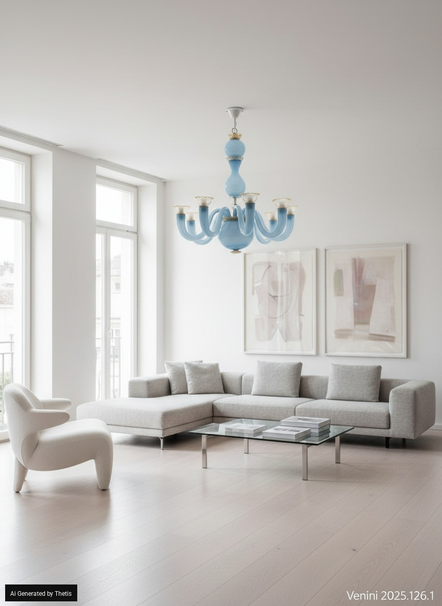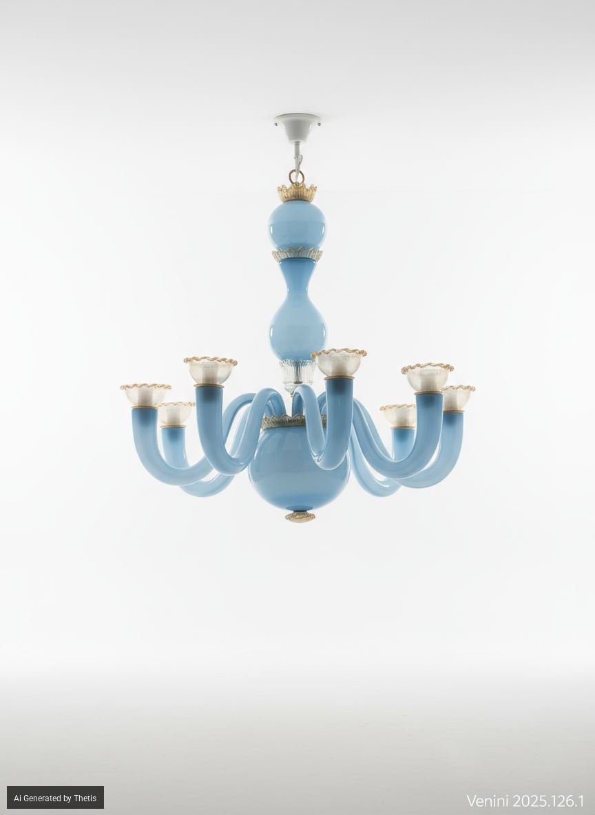 vetro azzurro e vetro a foglia d'oro, produzione Venini, cm 70x71