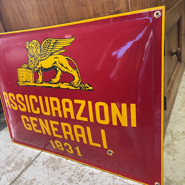 Antica insegna bombata Generali Assicurazioni smaltata.