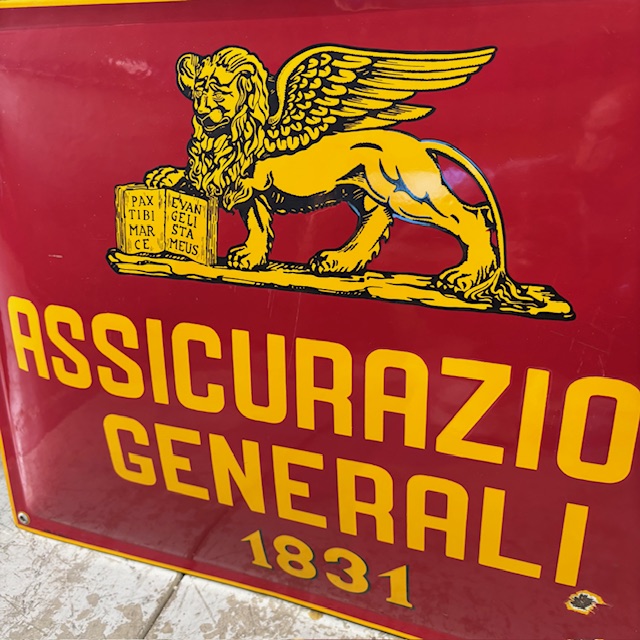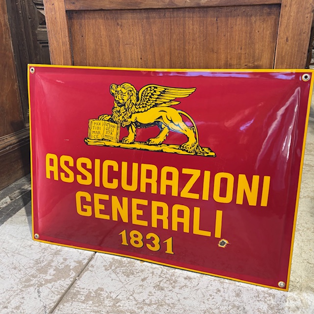 Antica insegna bombata Generali Assicurazioni smaltata. Mis 70 x cm 50
