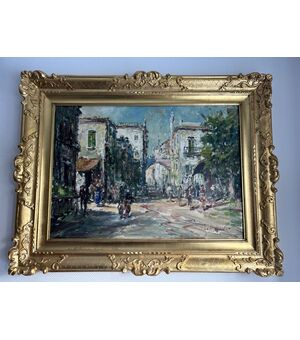 Bellissimo dipinto raffigurante una delle piazze più importanti di Roma,"Piazza Campitelli, già Piazza Capizucchi. Il dipinto , dai colori caldi ed avvolgenti e dalla luce avvolgente del cielo al tramonto, è racchiuso da una cornice dorata di inizio '800. Belle le misure: 117 x 93 con cornice...