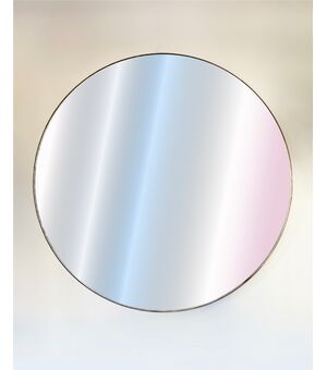 Elegante specchio Vintage dal profilo interamente in ottone e il retro in legno. Presenta un comodo gancio in acciaio per garantirne la stabilità sul muro. Dimensioni: DIAMETRO 100 cm Provenienza: Italia Anche altre misure attualmente disponibili.