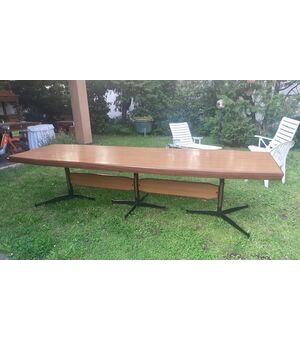 Grande tavolo aziendale completo di 8 sedie,il tavolo con struttura portante in ferro e piano in laminato e contorno in mogano massello Misure tavolo: cm. 322 x 102 x 78 di altezza