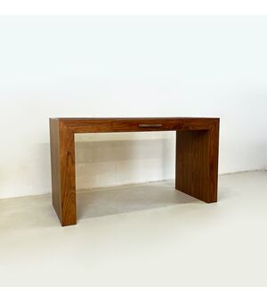 Particolare scrivania o consolle contemporanea in stile Art Decò 1930 interamente realizzata in legno di noce. Presenta un pratico cassetto sul fronte con maniglia in ottone. Provenienza: Italia Epoca: Nuova/Contemporanea Dimensioni: P 55 x L 135 x H 75