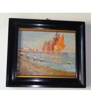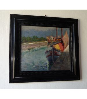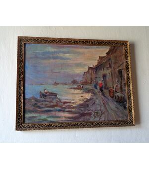 Raro dipinto del noto artista istriano Enrico Fonda. Olio su cartone:55/72cm circa.